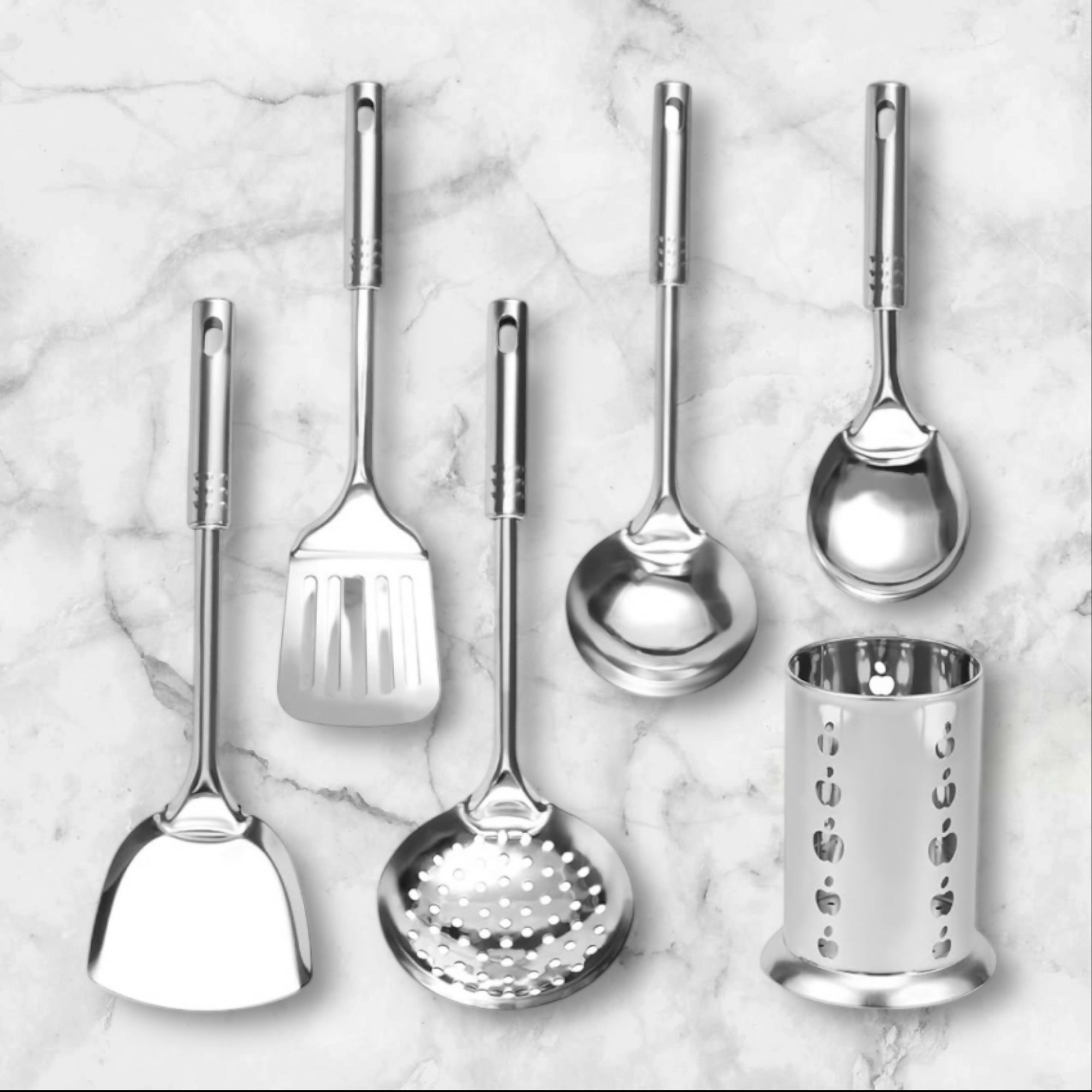 8-Piece Stainless Steel Kitchen Utensil Set | Cooking Tools & Holder | New in Box