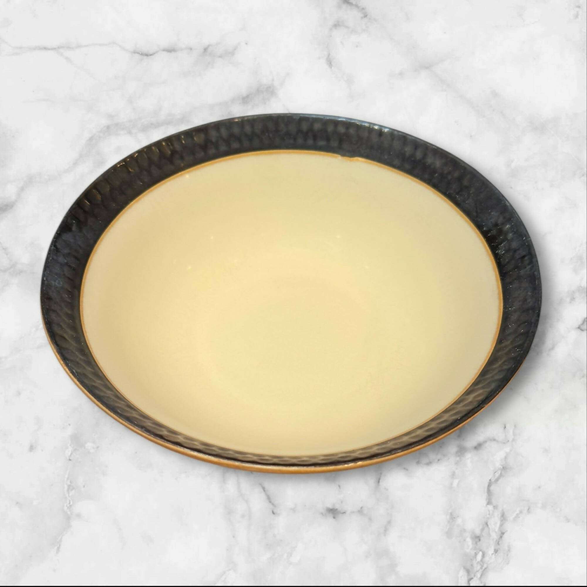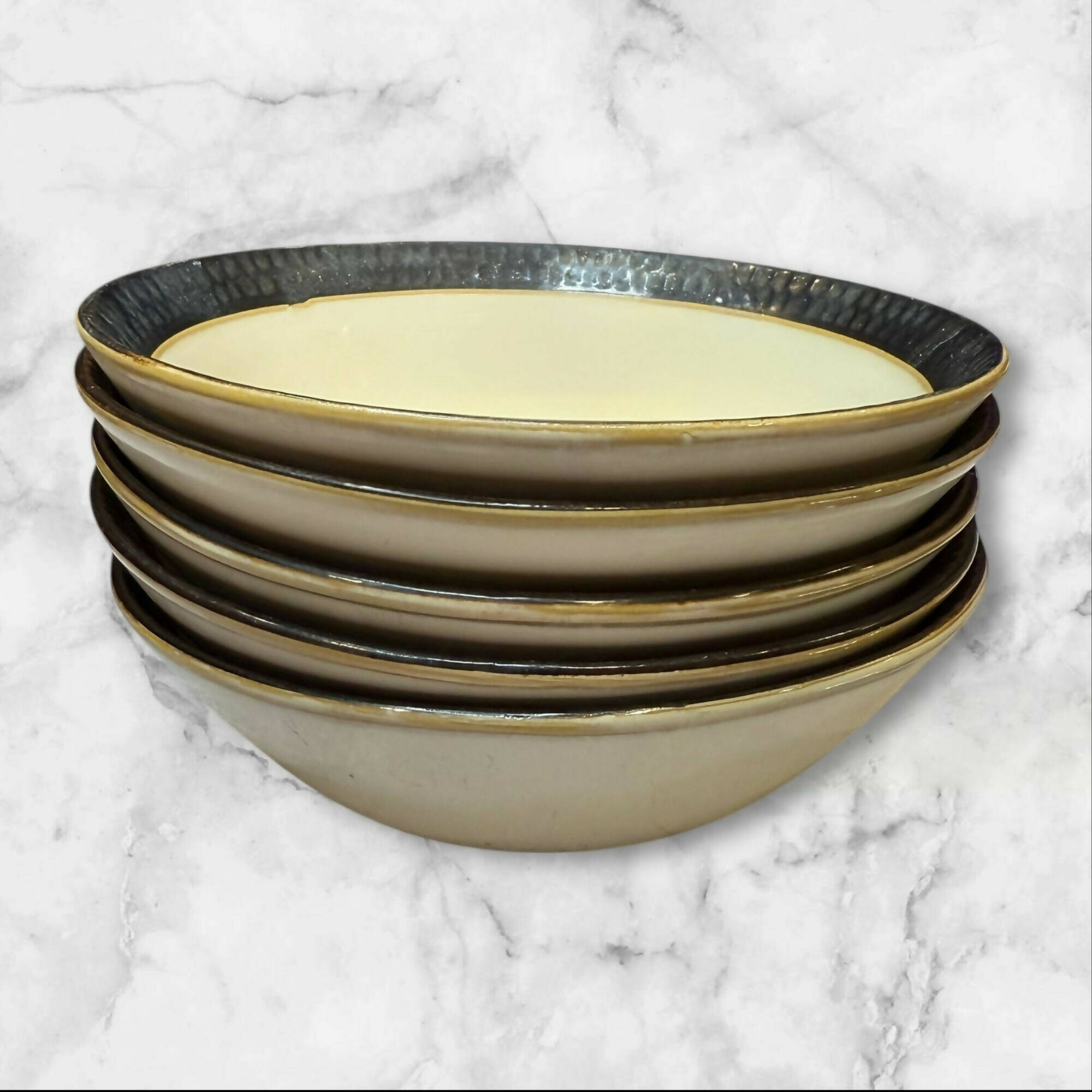 Crate & Barrel Yellow Swirl Stoneware Bowls | Set of 4 | Great Condition