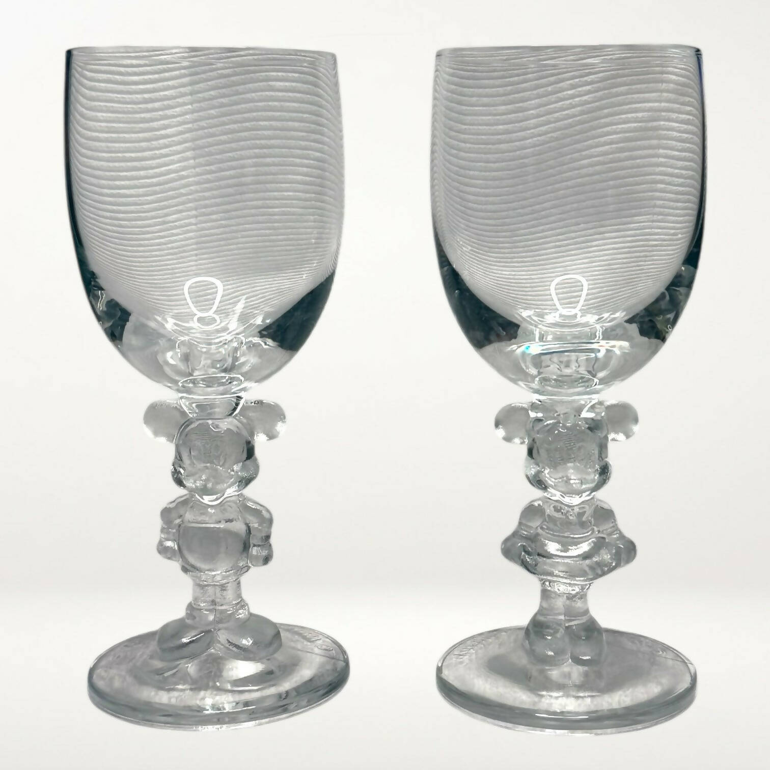Celebrate Disney magic with this charming set of two stemmed glasses featuring sculpted Mickey and Minnie bases. Crafted from clear molded glass with a textured bowl, these whimsical pieces blend nostalgia with functional elegance. Ideal for display, everyday use, or as replacement pieces, each glass is in excellent condition with bright clarity and crisp character detailing—perfect for Disney collectors or themed barware décor.