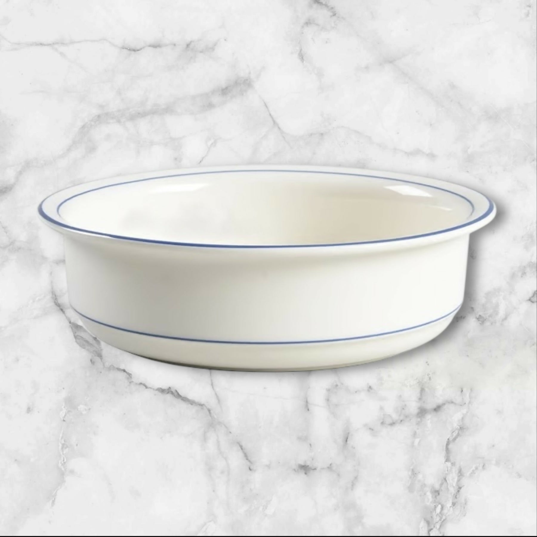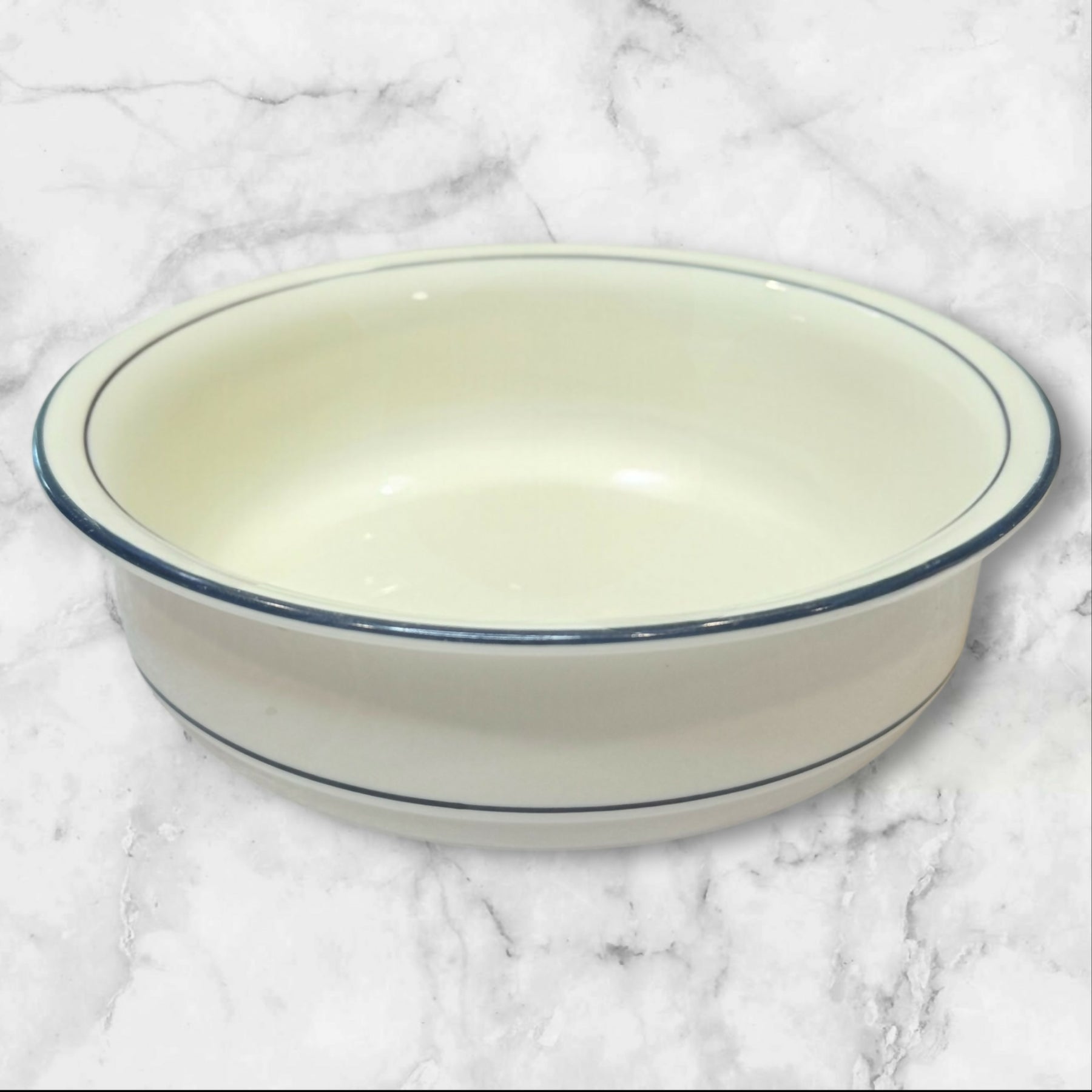 Serve soups, cereals, or hearty grains in timeless style with this set of four Lenox Blue Pinstripes soup and cereal bowls. Crafted with Lenox’s signature refinement, these bowls feature a clean ivory body accented by classic blue pinstripe detailing. Durable yet elegant, they transition seamlessly from everyday meals to casual entertaining. A discontinued design prized for its versatility, quality craftsmanship, and enduring American tableware aesthetic.