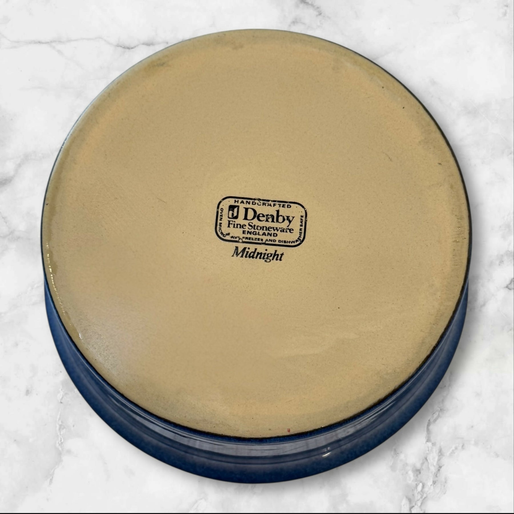Elevate your baking and serving with this Denby Langley Midnight souffle dish from the iconic Midnight collection. Crafted in England, this deep cobalt blue stoneware piece is perfect for soufflés, casseroles, baked desserts, and elegant table presentation. Oven, microwave, and dishwasher safe, it offers both beauty and durability. This discontinued piece is in excellent gently used condition and highly sought after for replacement or collection completion.