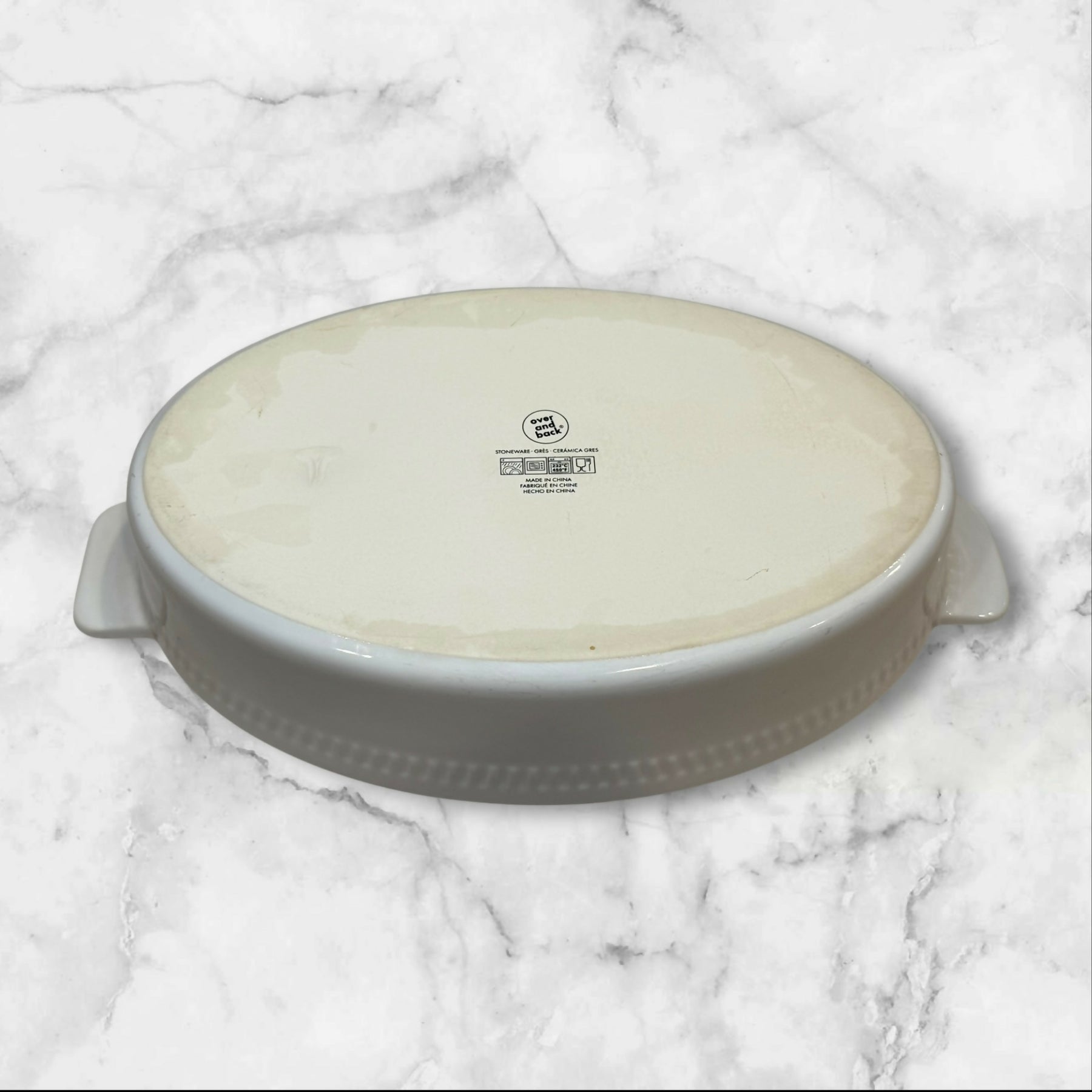 Elevate your bakeware collection with this Portmeirion Sophie Conran White Oval Baker. Crafted of durable porcelain stoneware, this versatile piece is ideal for roasting vegetables, baking casseroles, or serving side dishes straight from oven to table. Featuring a subtle textured design and convenient handles, it offers both elegance and practicality. In gently used, great condition with no chips or cracks.