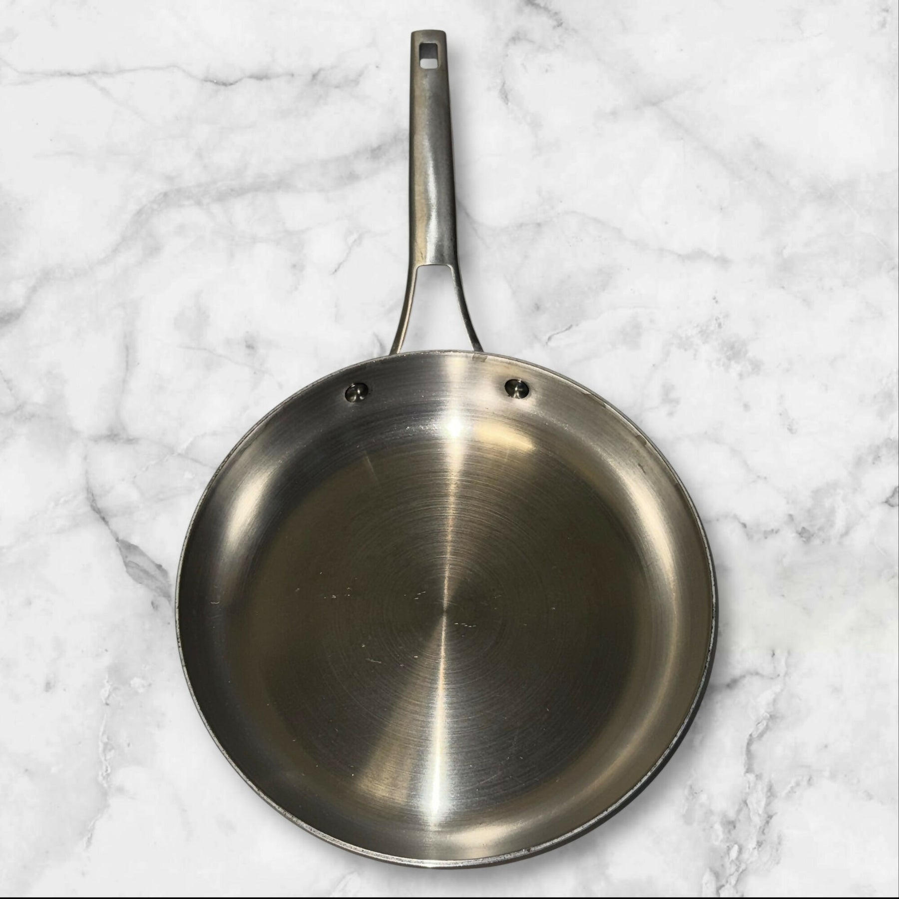 Elevate your cooking with this Calphalon Premier Stainless Steel 10-Inch Fry Pan (RLT1390). Crafted for durability and performance, this pan ensures even heating for searing, sautéing, and browning. The long, ergonomic handle stays cool while providing comfort and balance. Built to last, this professional-quality pan is in great condition and ready for everyday use.