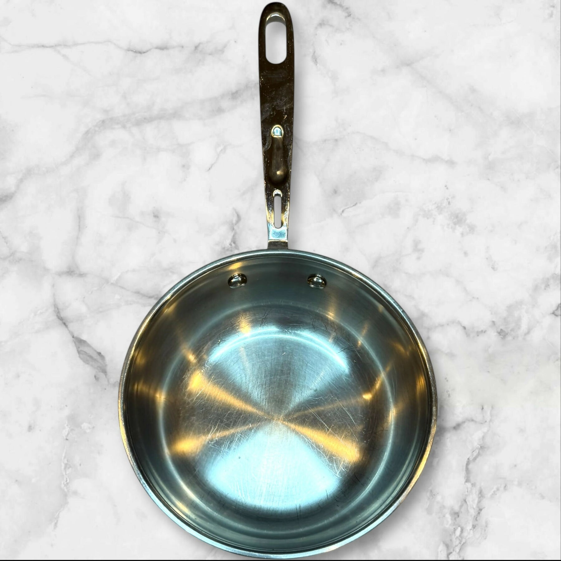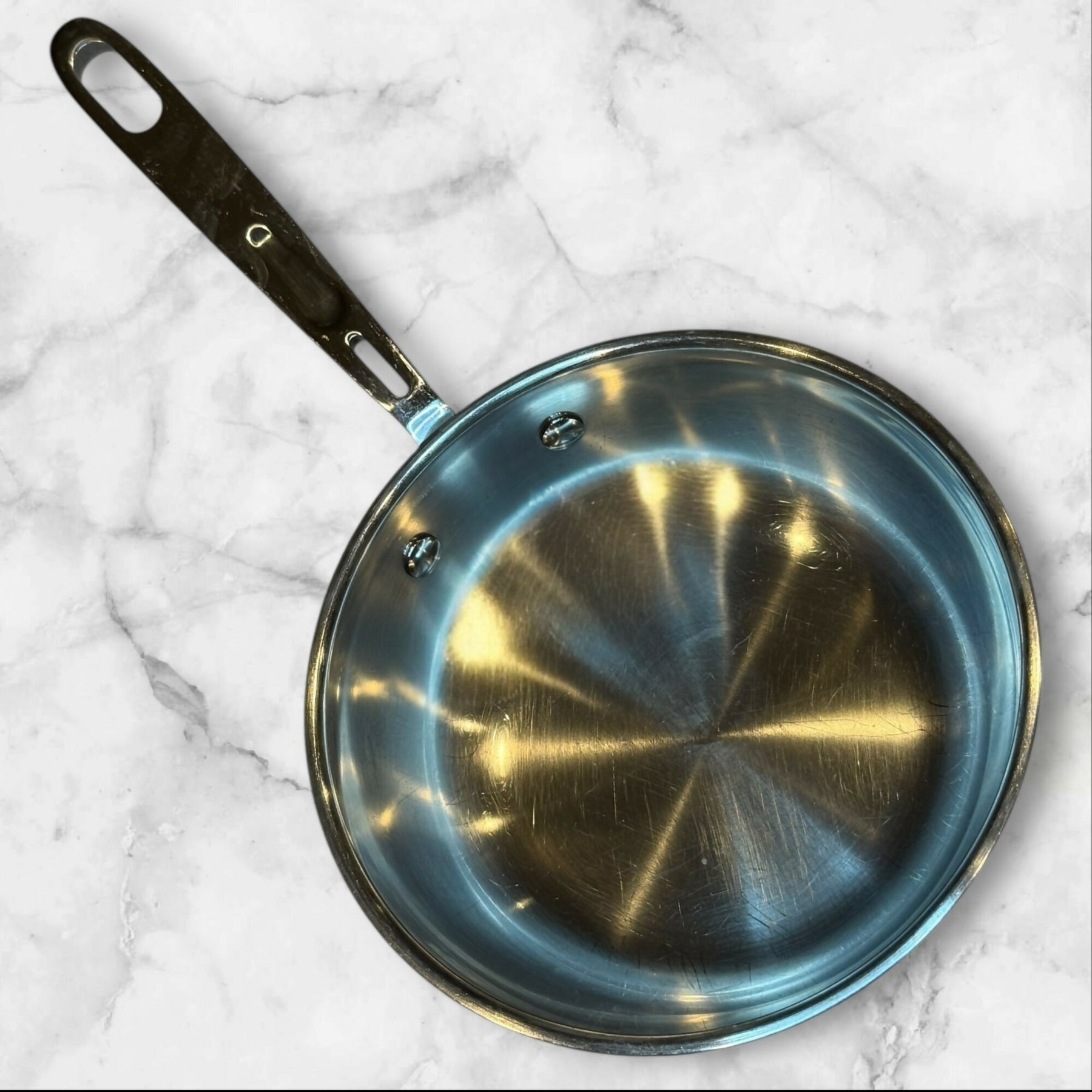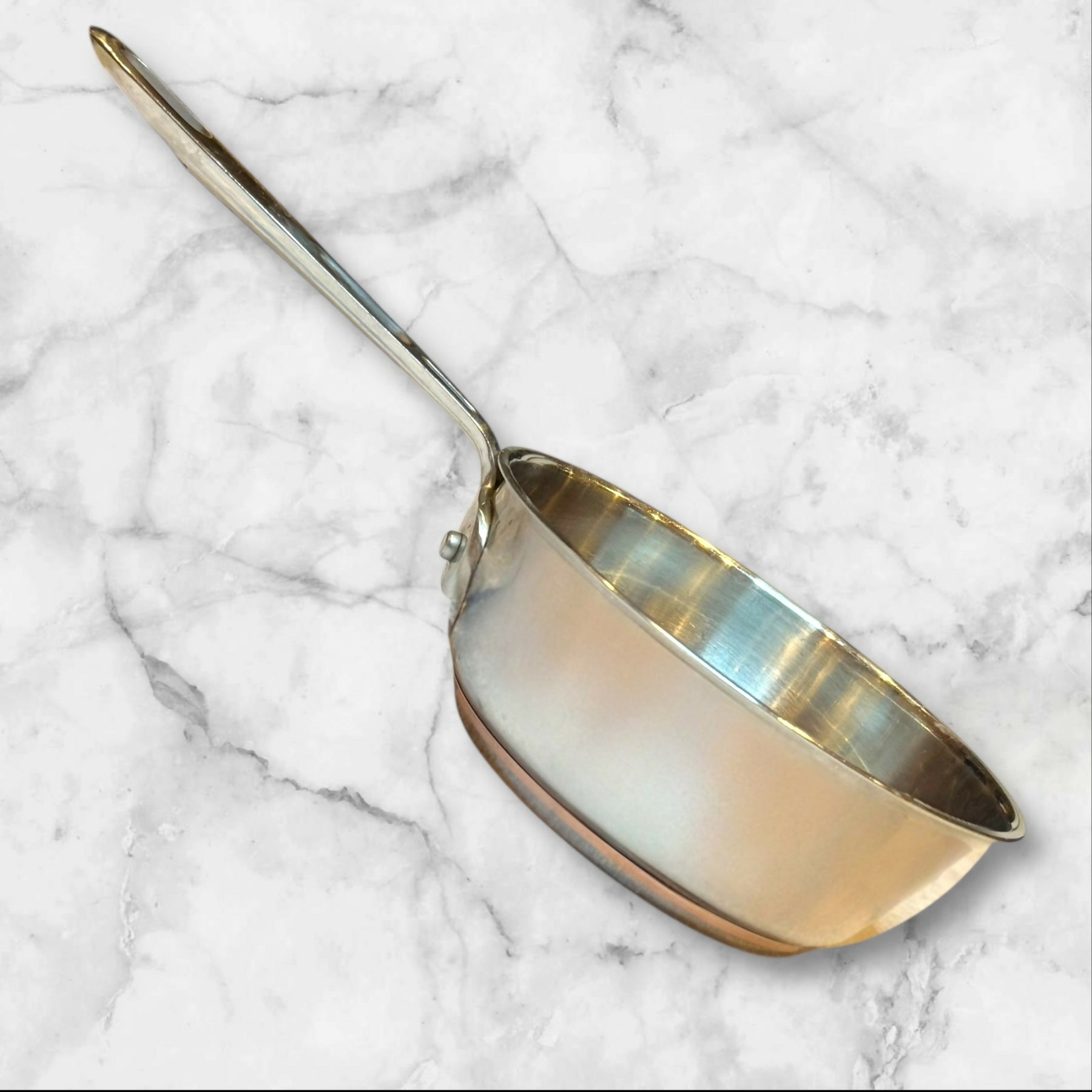 Cook small portions with precision using this Emeril Copper Core 1-quart saucepan. Designed for exceptional heat distribution, this stainless steel pan features a copper core base and a polished finish for lasting shine. Ideal for sauces, melting butter, or reheating, it combines professional quality with easy everyday use. Gently used and in good condition, this durable pan is built to perform and impress.