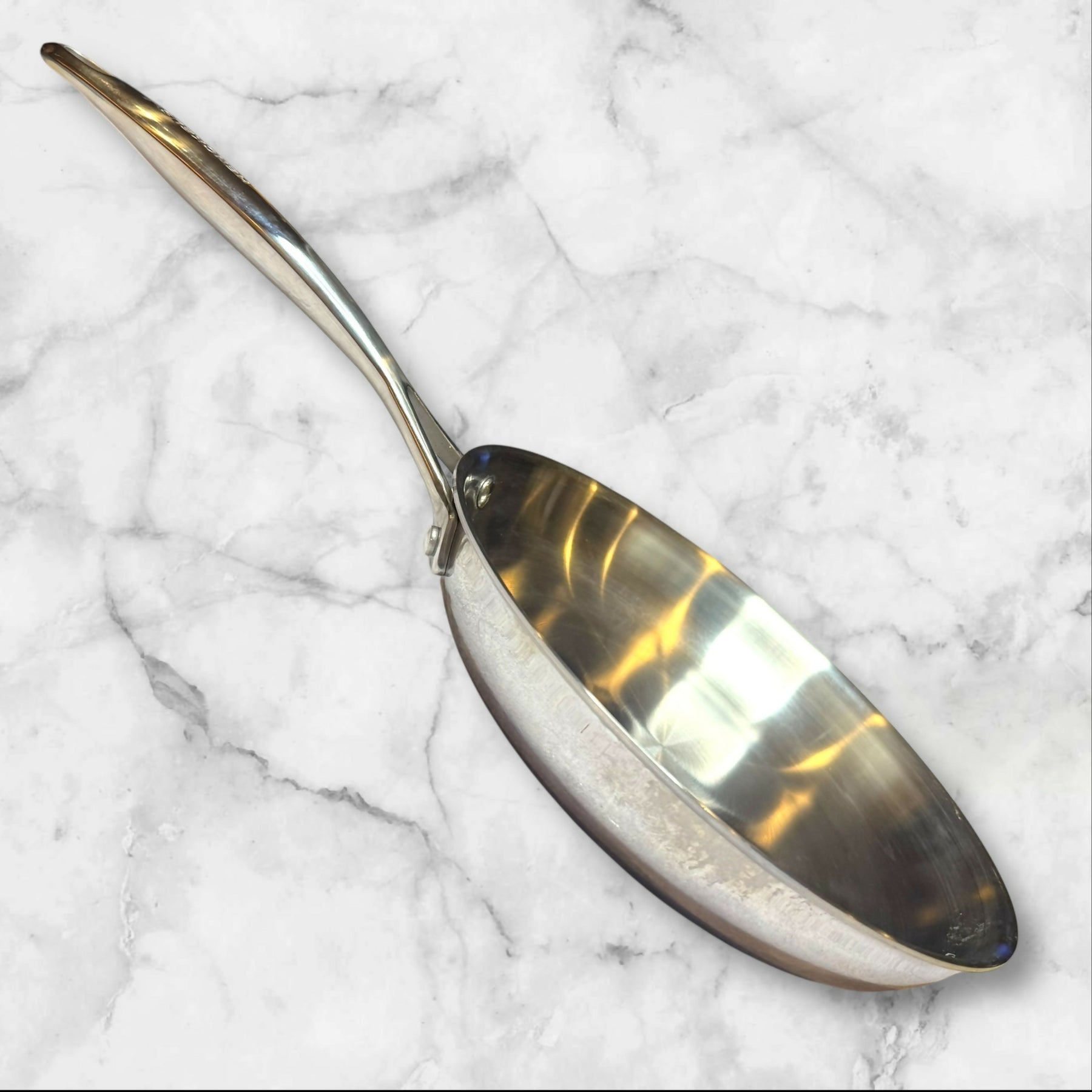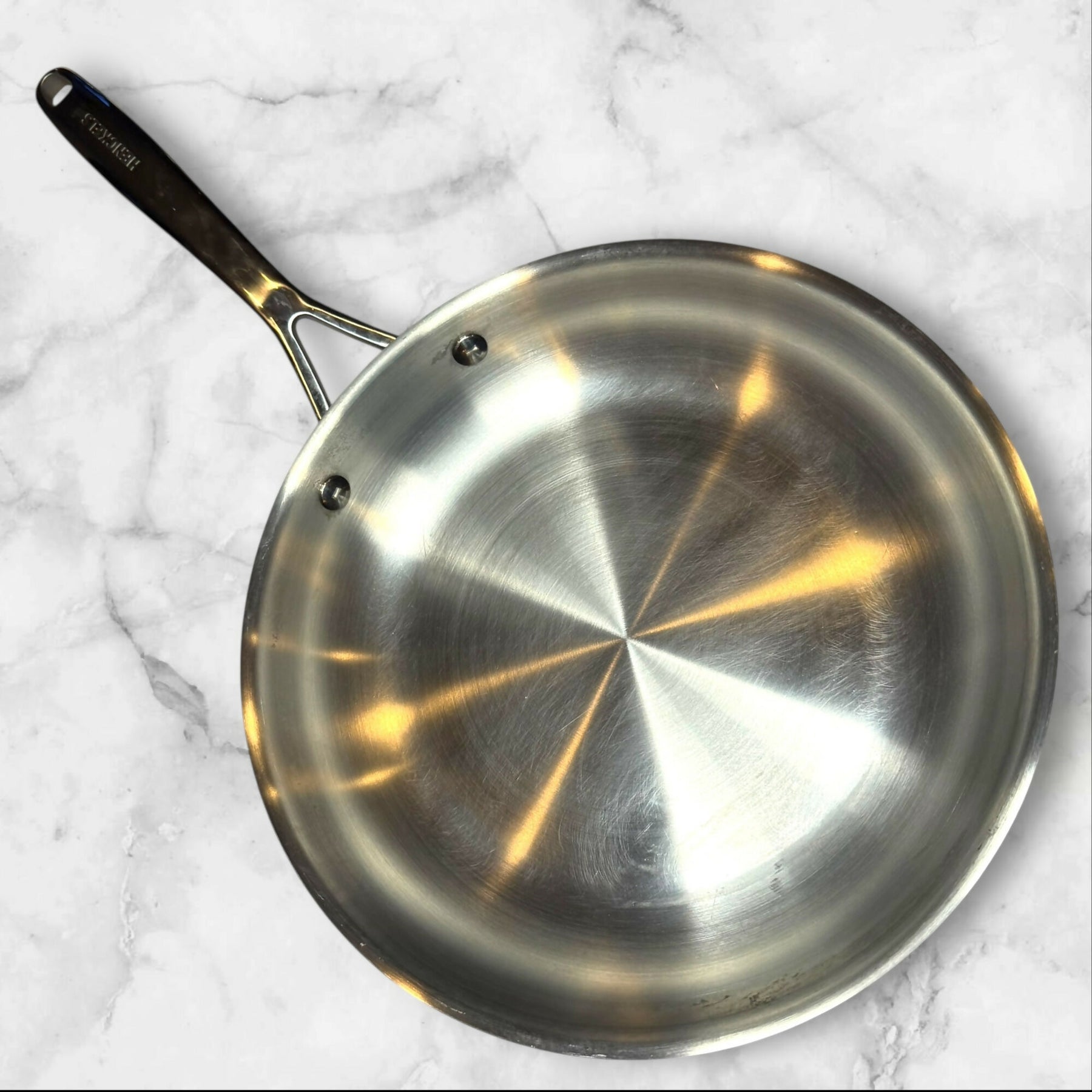 Upgrade your cookware with this Henckels 10-Inch Stainless Steel Fry Pan. Built with 18/10 stainless steel, it ensures excellent heat retention and durability for professional-quality results at home. Perfect for frying, searing, or sautéing, this versatile skillet is compatible with all cooktops, including induction. In great condition with minimal wear, it delivers both style and performance—an ideal choice for everyday cooking or as part of your Henckels collection.