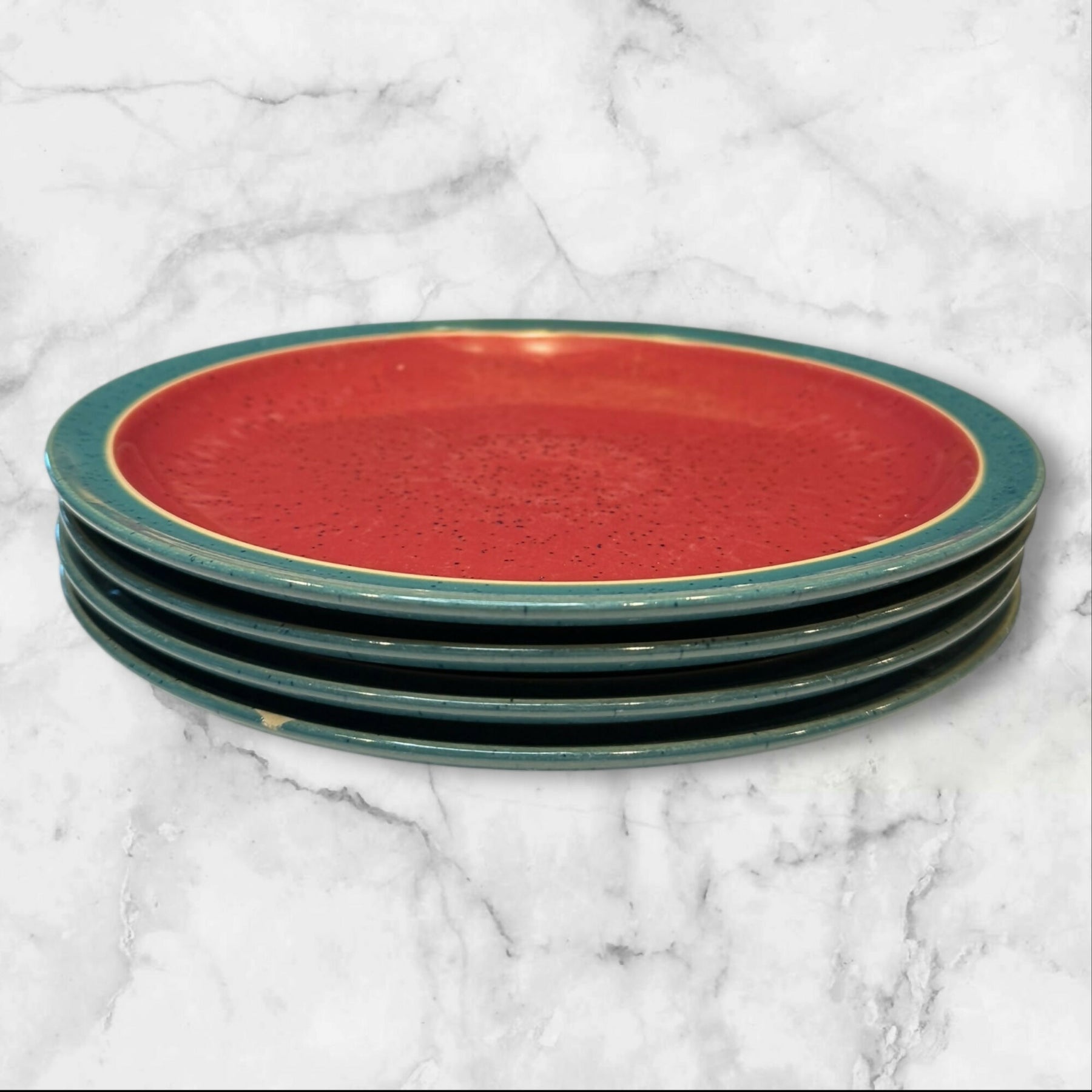 Denby Harlequin Red/Green Stoneware Dinner Plates | Set of 4 | Good
