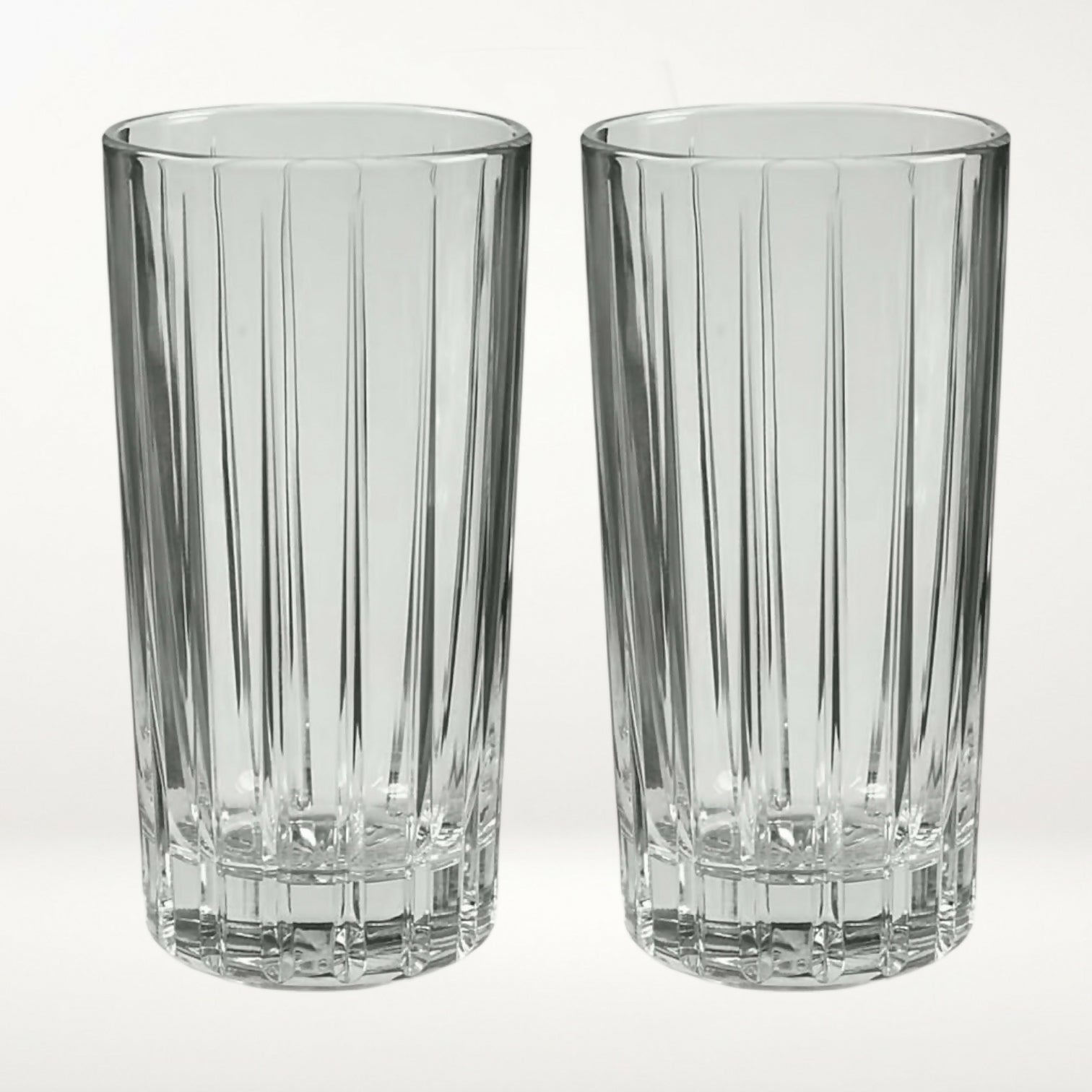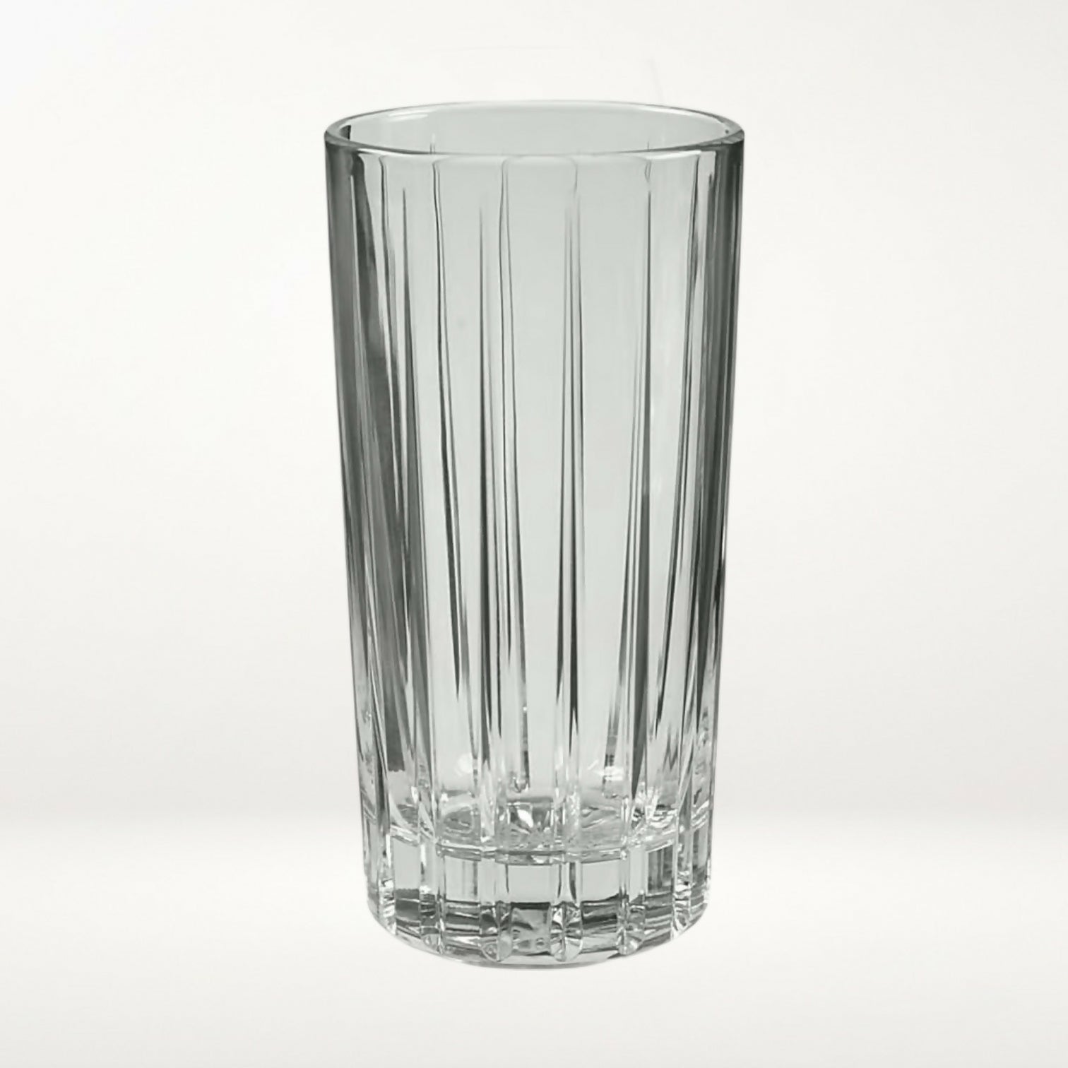 Elevate everyday drinks with this set of six Stanford cooler glasses by Cristal d’Arques Durand. Crafted in France, these elegant glasses feature clean vertical cuts and a weighted base for a timeless, versatile look. Ideal for water, iced tea, cocktails, or soft drinks, they blend classic European design with everyday durability. A discontinued pattern that works beautifully for both daily use and entertaining.