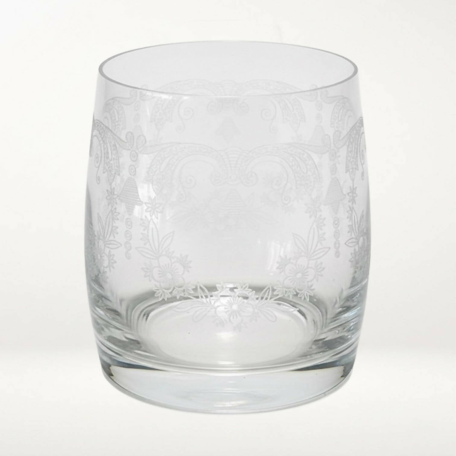 Elevate your barware collection with this elegant set of Cascade double old fashioned glasses by Import Assoc. Crafted from blown glass and featuring a delicate etched motif, these discontinued pieces offer timeless style for everyday use or entertaining. Their weighted base and refined detailing make them ideal for cocktails, spirits, or mixed drinks. In great condition with minor wear, they remain a beautiful, functional addition to any home bar.