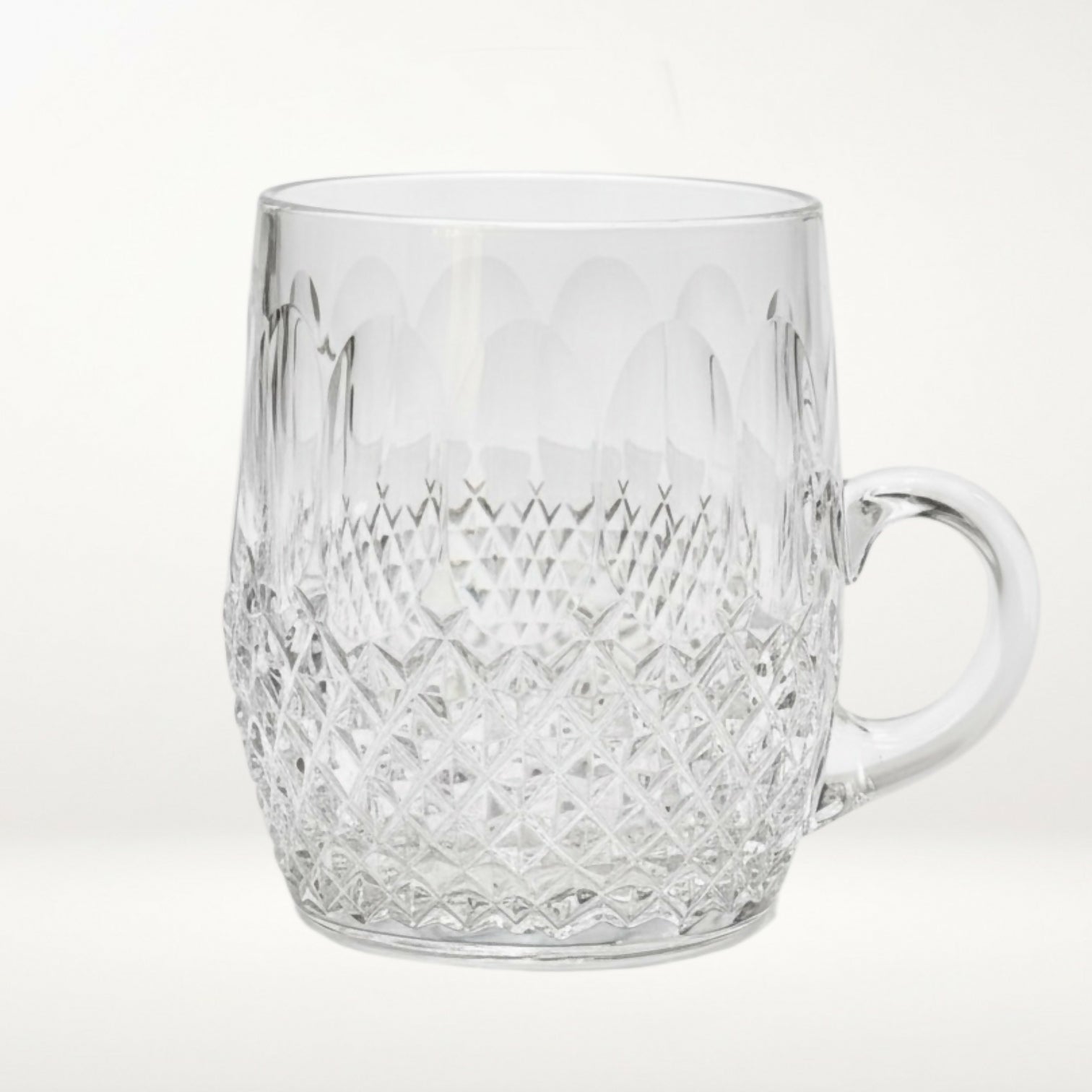 Add timeless Irish elegance to your glassware collection with this set of four Irish cut crystal mini tankard mugs. Hand-blown with classic Colleen-style detailing, these crystal mugs feature intricate diamond and fan cuts that beautifully catch the light. Perfect for coffee, cocktails, espresso, or refined bar service, they offer vintage charm in a compact, versatile size. A standout addition for entertaining or crystal collectors.