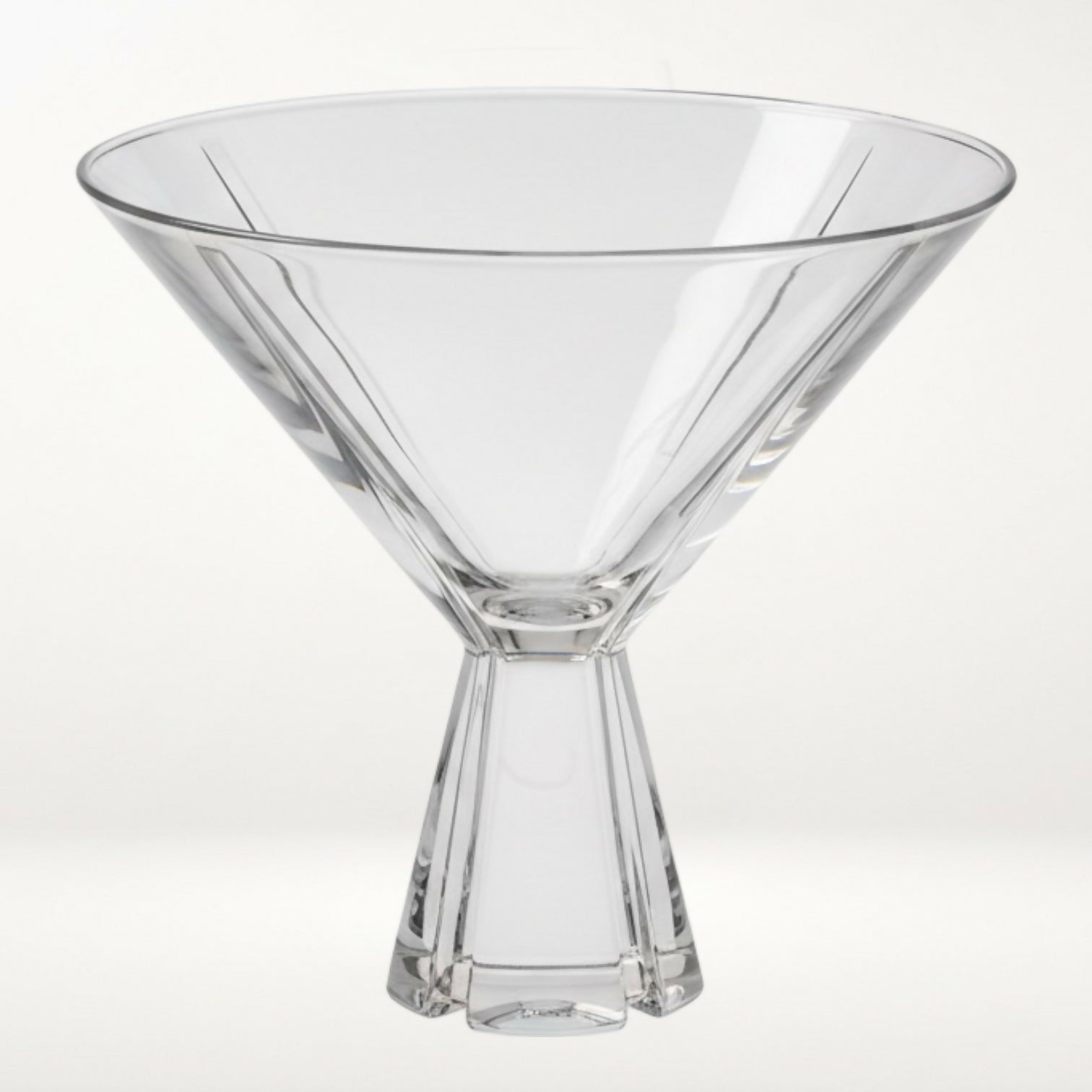 Serve cocktails in striking modern style with this set of 2 Mikasa Havana martini glasses. Crafted from elegant blown glass, these glasses feature a wide, angular bowl and sculptural stem that adds drama to any bar or tablescape. Designed for classic martinis, cosmopolitans, or specialty cocktails, this discontinued Mikasa pattern is highly sought after by collectors and replacement buyers alike.