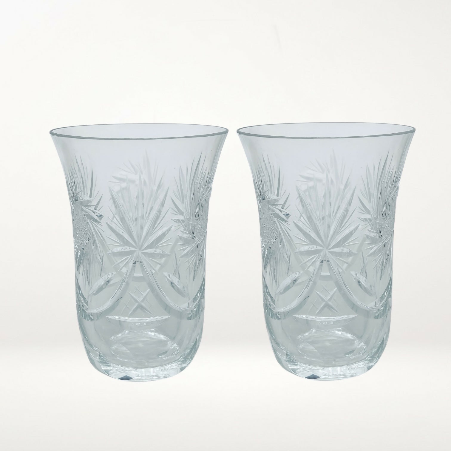 Serve drinks in timeless elegance with this set of 2 Nachtmann Andernach Crystal Flat Tumblers. Featuring hand-cut starburst detailing, these 6 oz glasses exude vintage charm and German craftsmanship. Their balanced weight and sparkling clarity make them perfect for cocktails, whiskey, or water. A discontinued pattern, highly sought after by collectors. Gently used, excellent condition with no chips or cracks.
