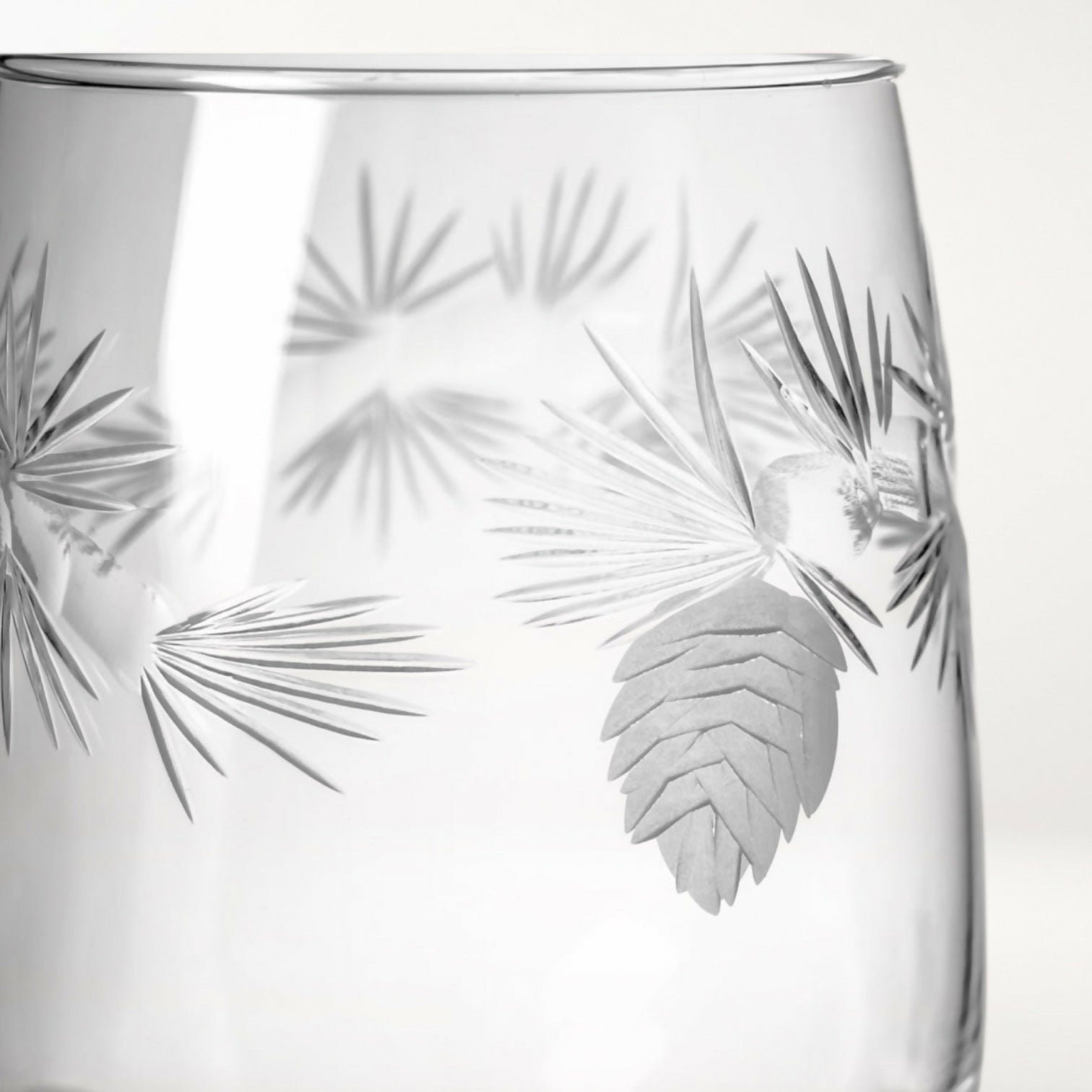 Bring the beauty of the outdoors to your table with this set of Rolf Glass Icy Pine wine glasses. Featuring diamond-wheel engraved pine needles and cones, each glass sparkles with refined detail and artisanal craftsmanship. Made in the USA and beautifully polished, these glasses offer generous capacity and timeless elegance—perfect for everyday enjoyment or seasonal entertaining.