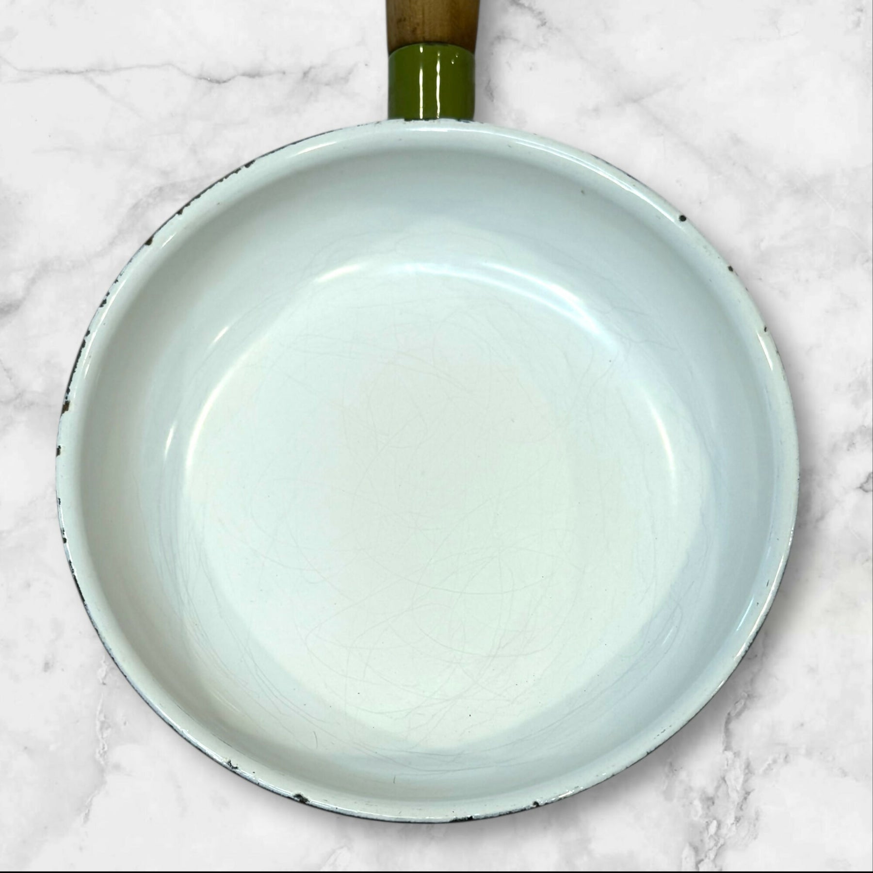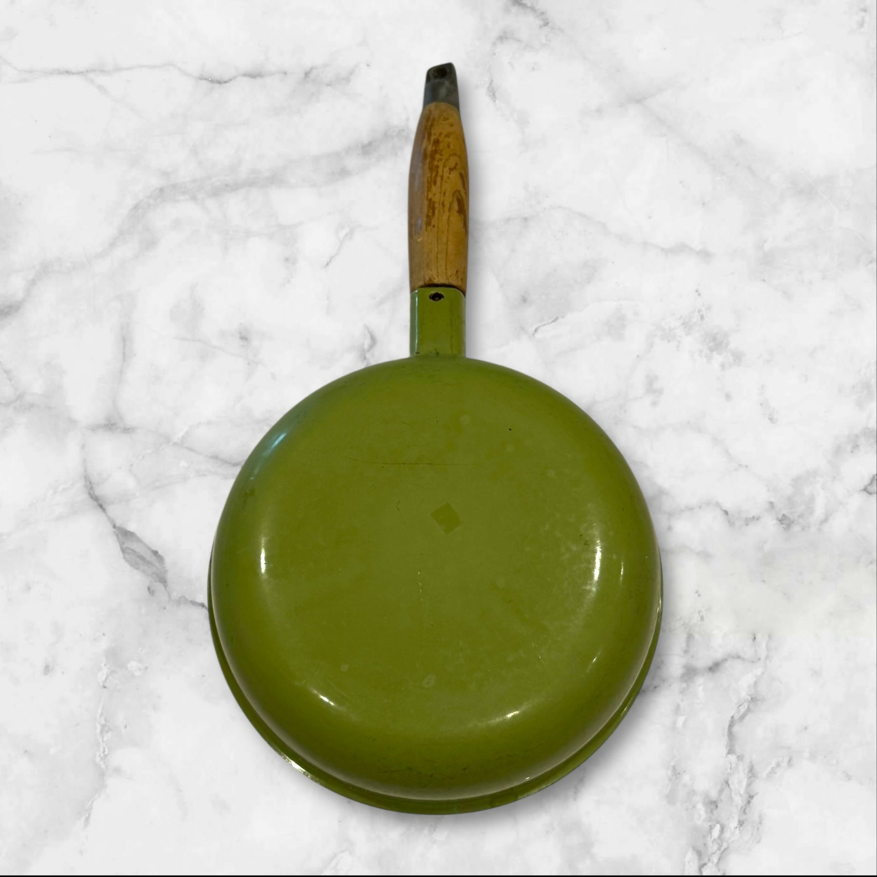Bring iconic Scandinavian design into your kitchen with this vintage enamel butter warmer from Cathrineholm. Crafted in the mid-century era, this piece features durable enameled steel construction with a warm wooden handle and classic olive green finish. Perfect for melting butter, warming sauces, or display in a curated MCM kitchen, this collectible cookware blends function with timeless Nordic style.