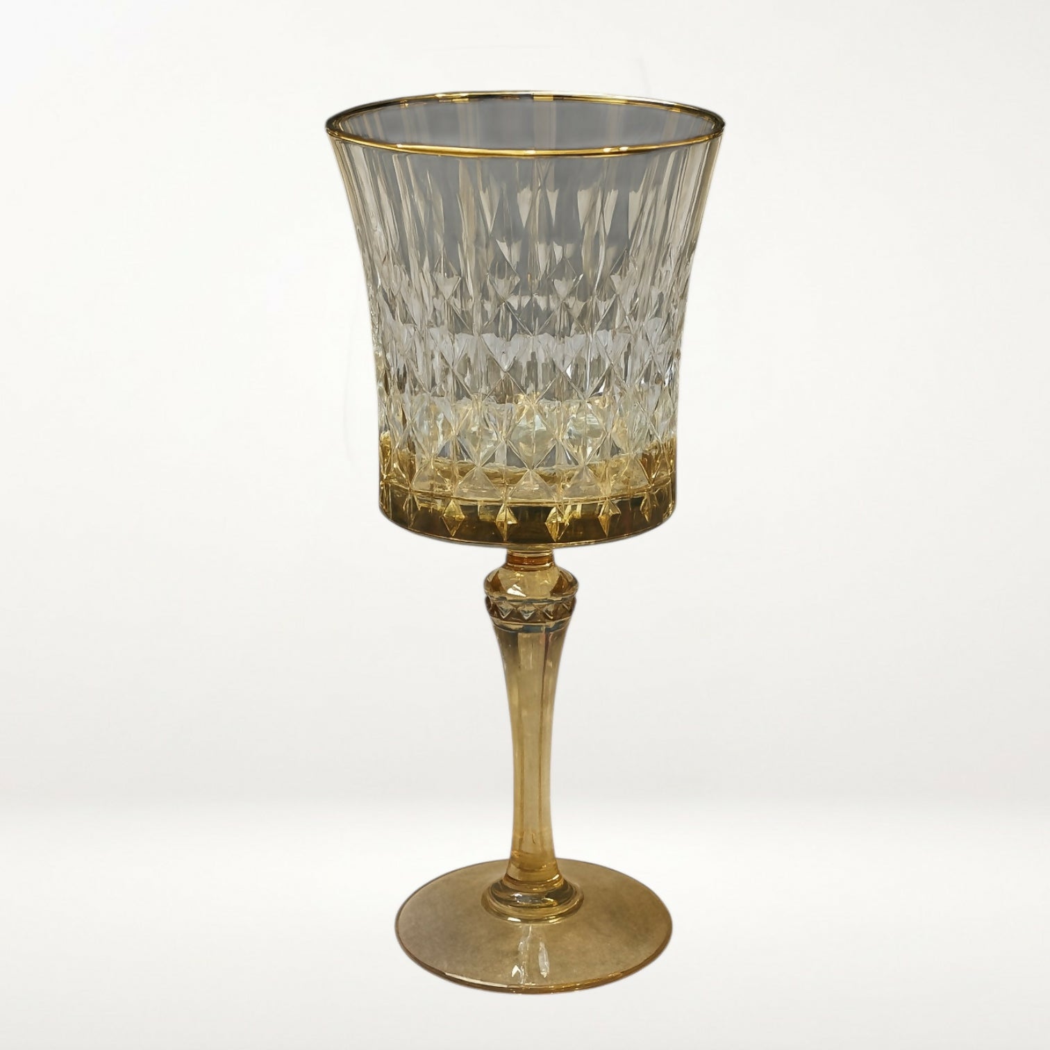 Elevate any occasion with this exquisite Cristal d’Arques Paris goblet. Crafted in France from fine lead crystal, it features an elegant gold tint with intricate diamond cuts and a tall, graceful stem. Perfect for wine or champagne, this stunning piece captures luxury and timeless design. In excellent condition—no chips or cracks—ideal for collectors or formal entertaining.