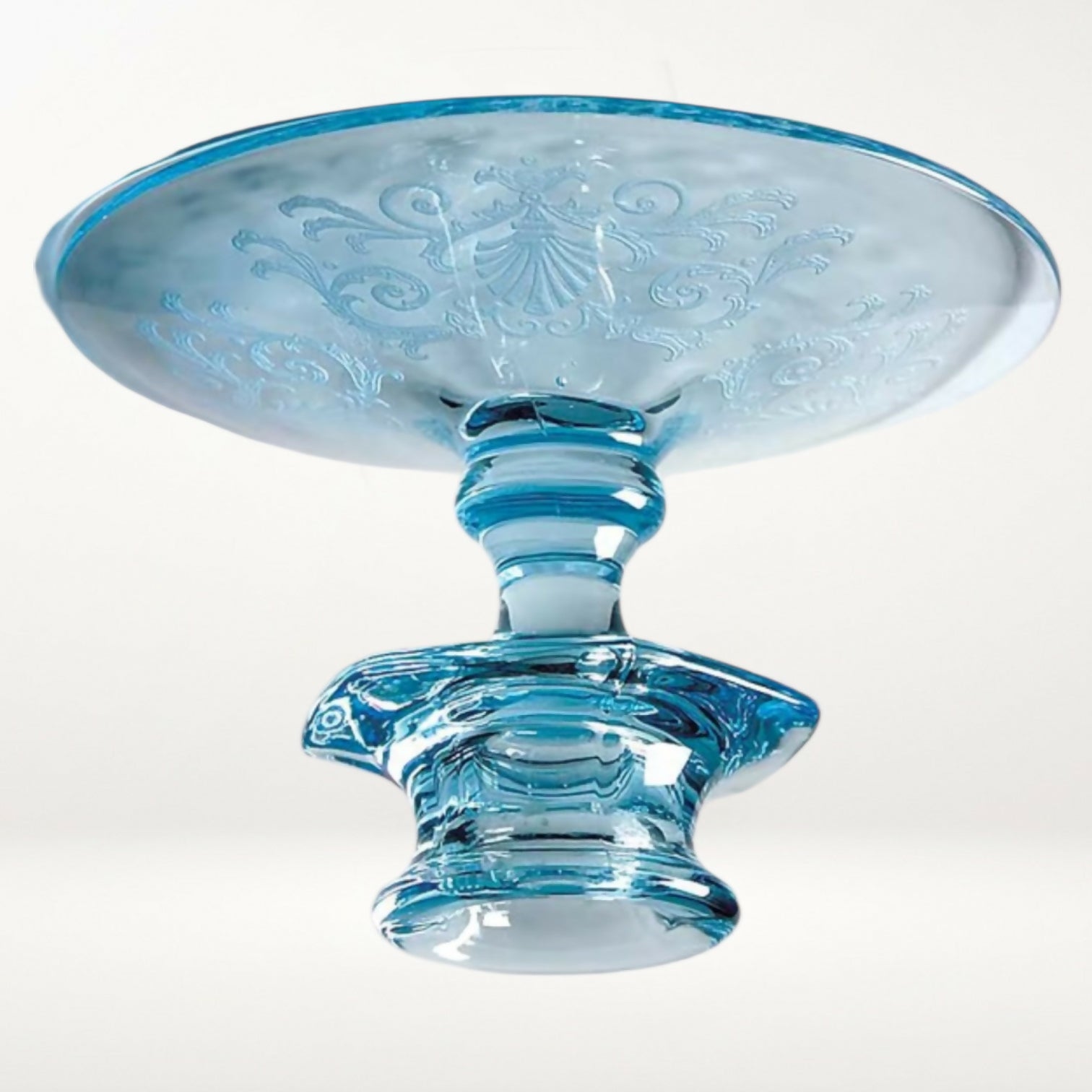 Condition: Great Condition – crisp etching, clear blue glass, minimal vintage wear