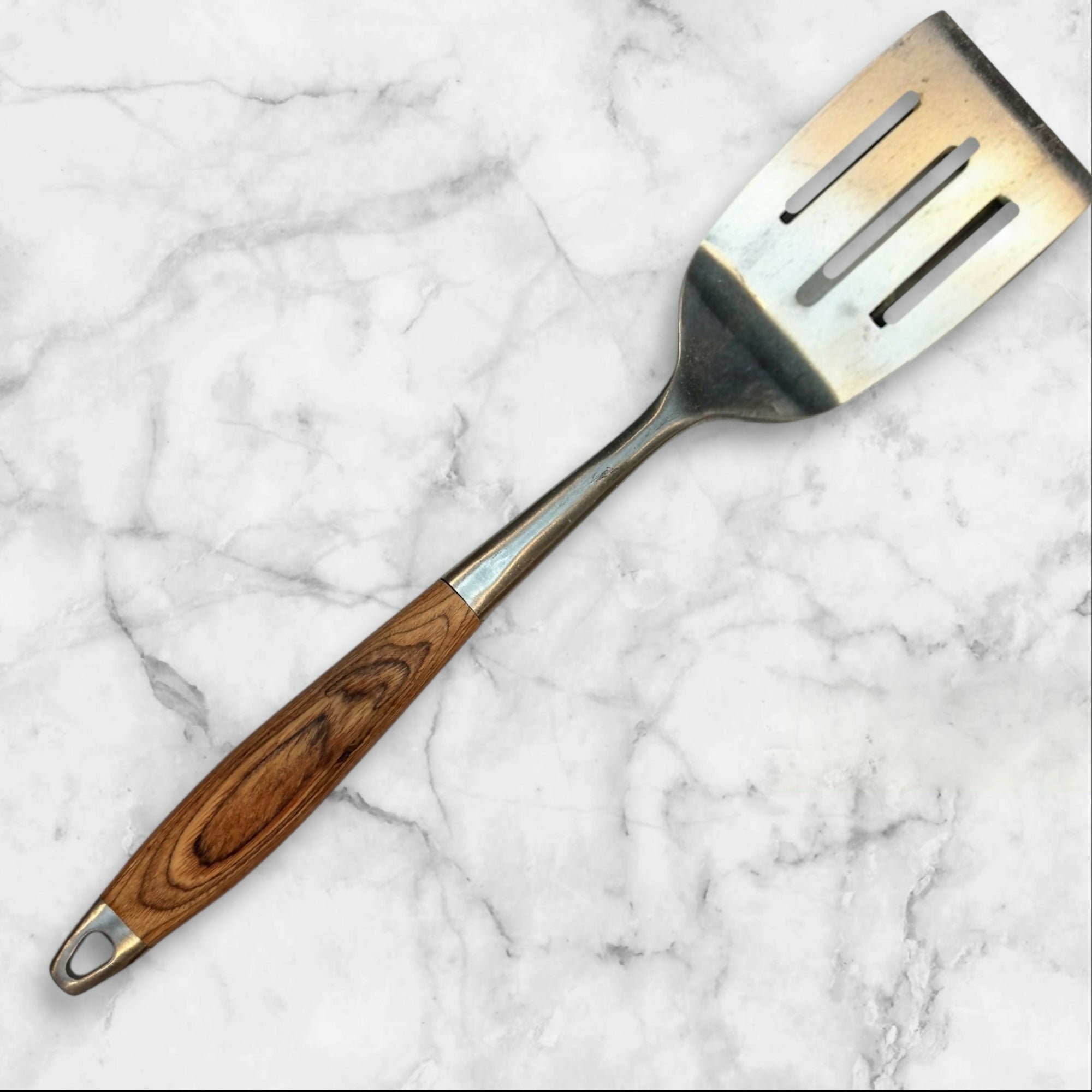 Stainless Steel Slotted Turner Spatula Wood Handle | Great Condition