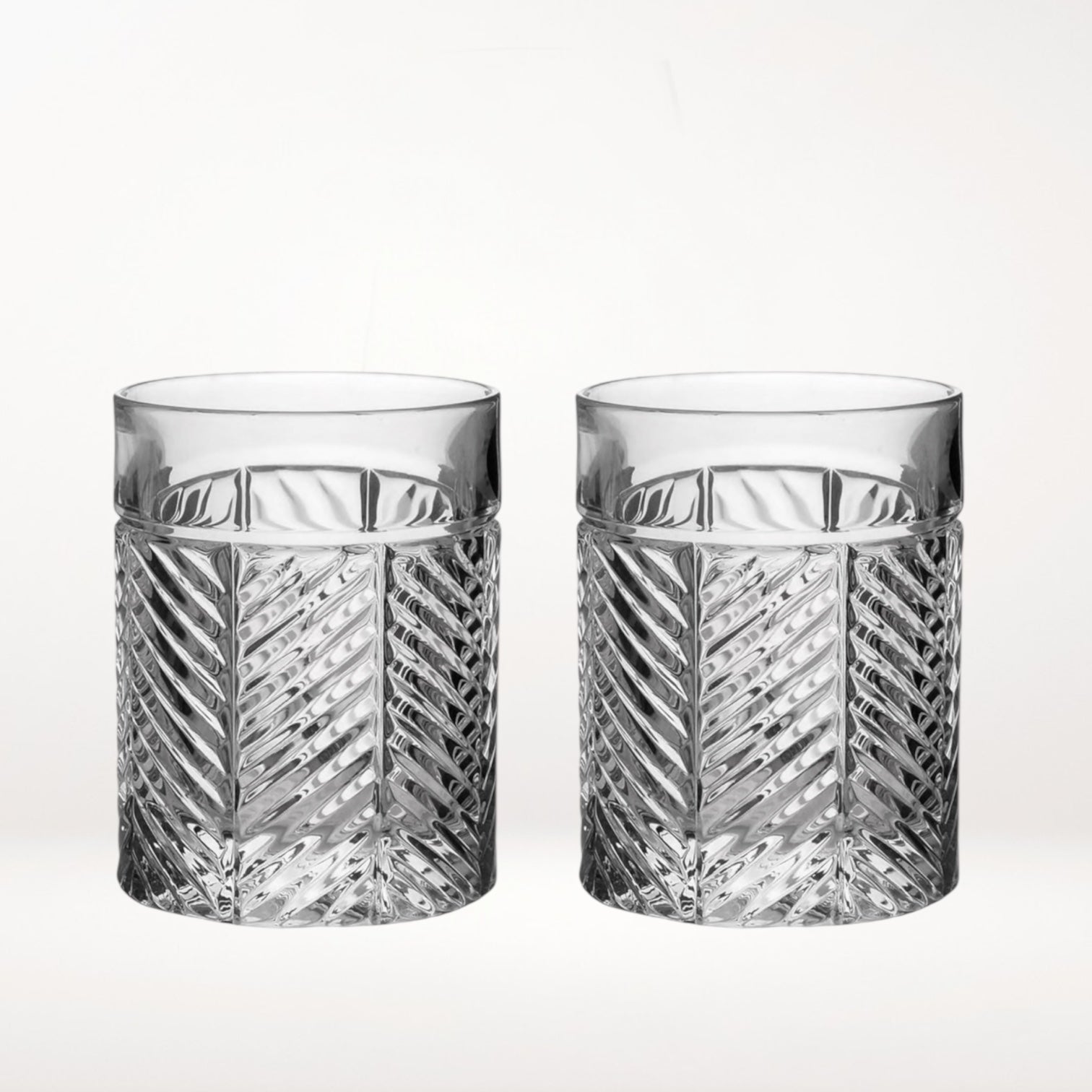 Ralph Lauren Crystal Herringbone Old Fashioned Glasses | Set of 2 | Exc