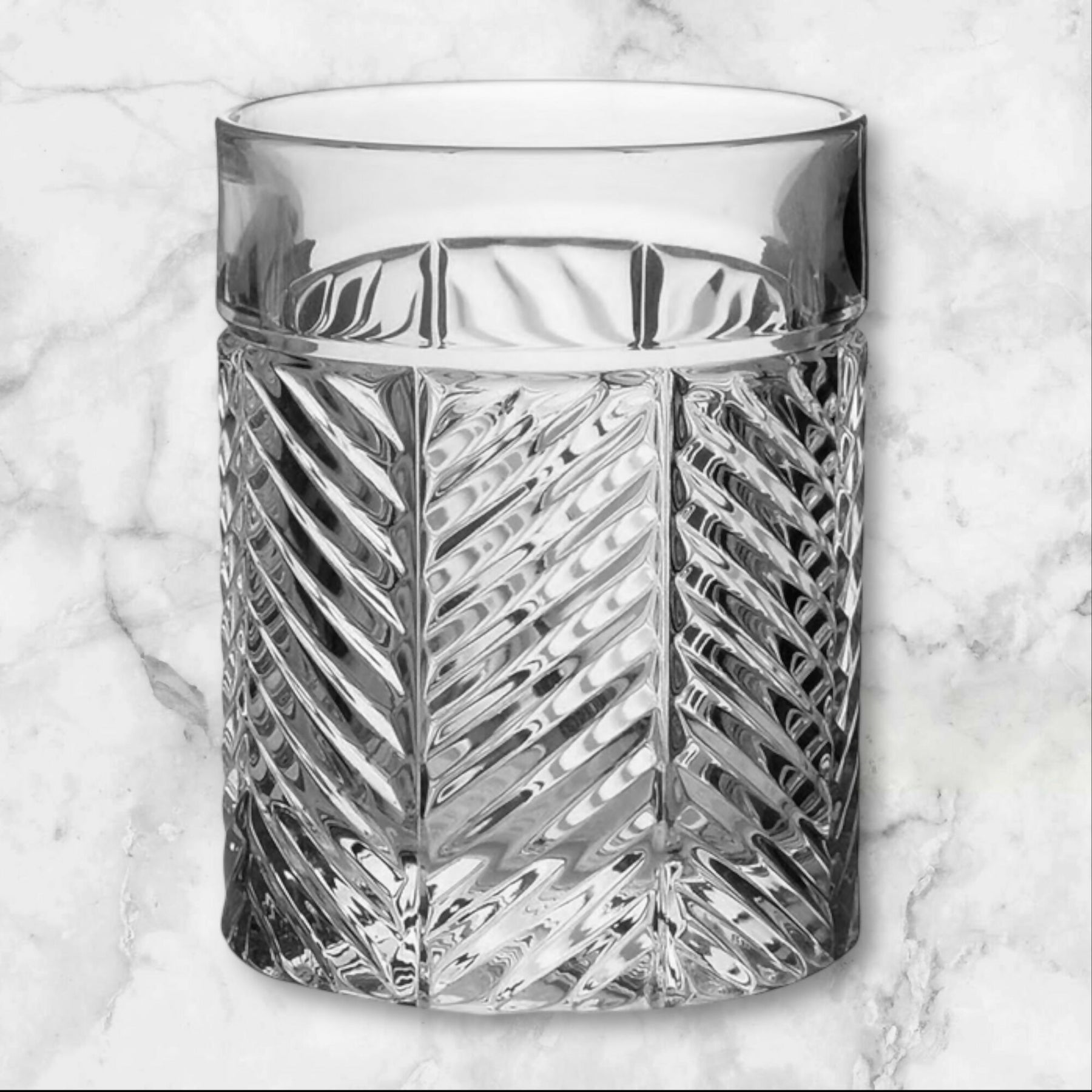 Bring timeless elegance to your barware collection with these Ralph Lauren Crystal Herringbone Old Fashioned Glasses. Crafted in Germany from fine blown glass, each piece showcases the striking herringbone cut pattern, making them perfect for whiskey, cocktails, or everyday entertaining. A discontinued and highly collectible design.