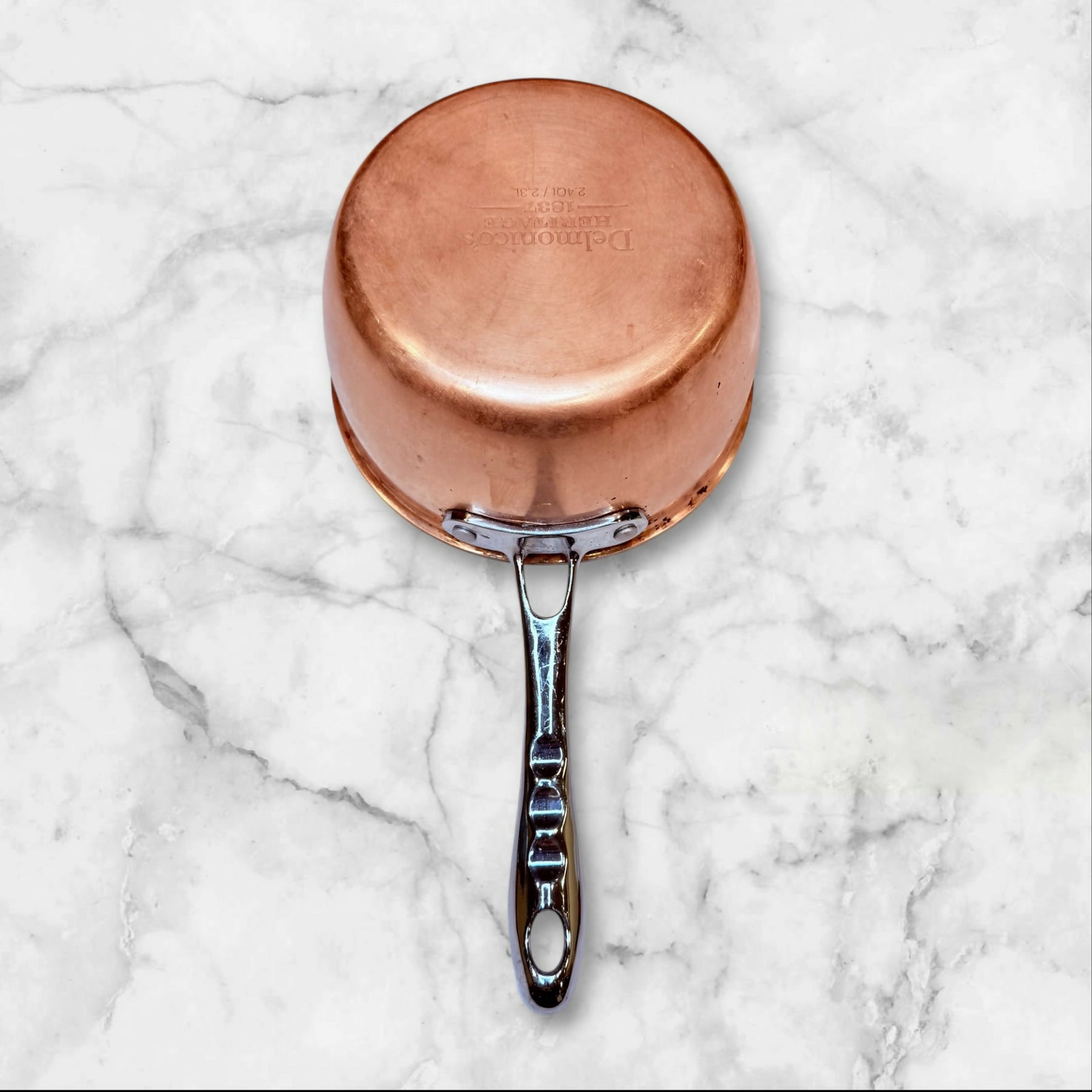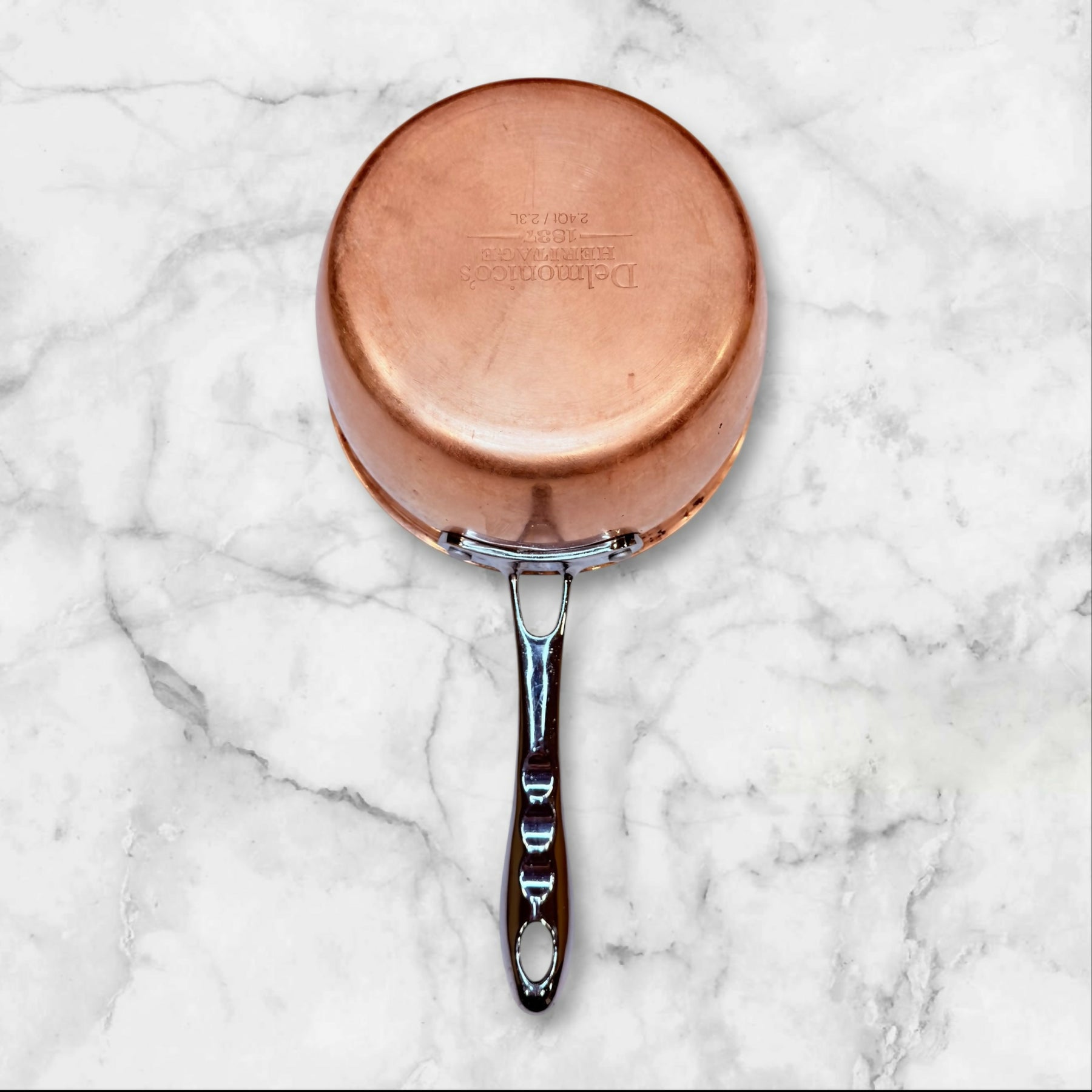 Elevate your kitchen with this Delmonico’s Heritage 1831 copper saucepan, crafted for superior heat control and professional performance. Featuring a solid copper exterior for rapid, even heating and a stainless steel interior for durability, this 2.4-quart pan is ideal for sauces, reductions, and small-batch cooking. A beautiful, functional piece that blends classic European craftsmanship with everyday usability.