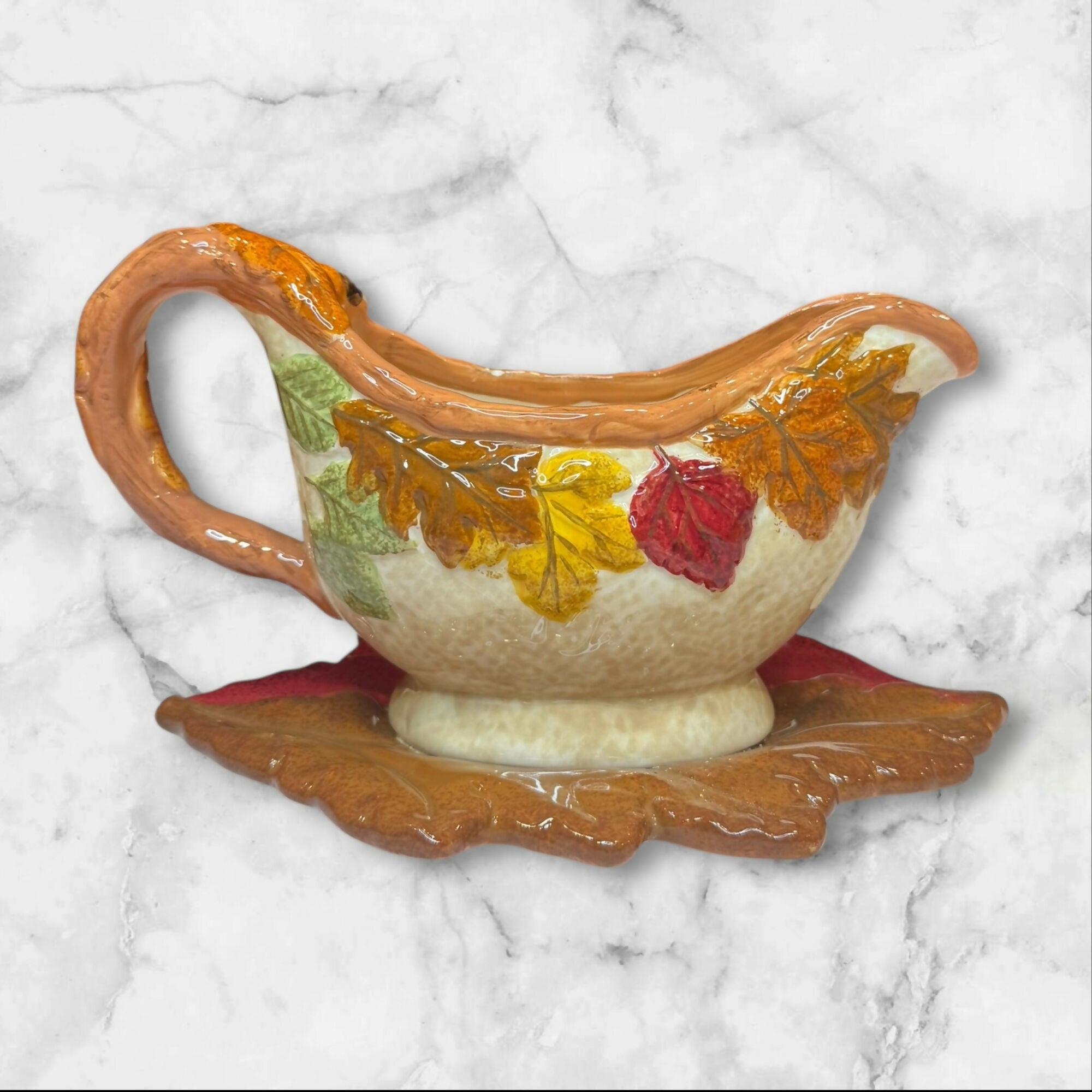 Baum Harvest Leaves Gravy Boat w/ Leaf Plate | 8.75” | Good Condition