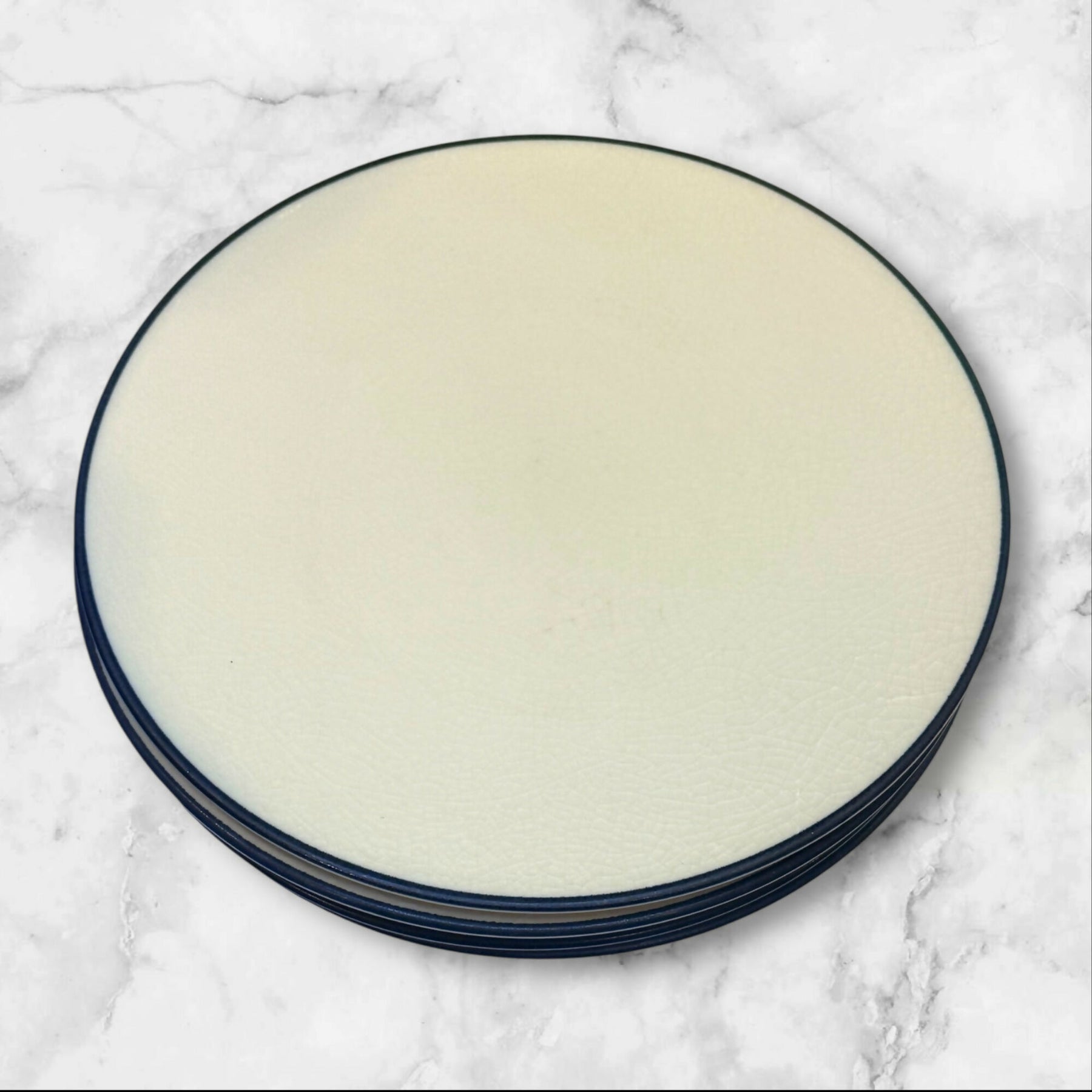 Elevate your dining with this set of 4 Crate & Barrel Kita dinner plates. Featuring a refined ivory crackle glaze and sleek dark rim, these plates offer understated elegance that complements any table setting. At just over 11 inches in diameter, they’re ideal for main courses and entertaining. From a discontinued collection, they remain highly collectible and perfect for both everyday use and special gatherings.