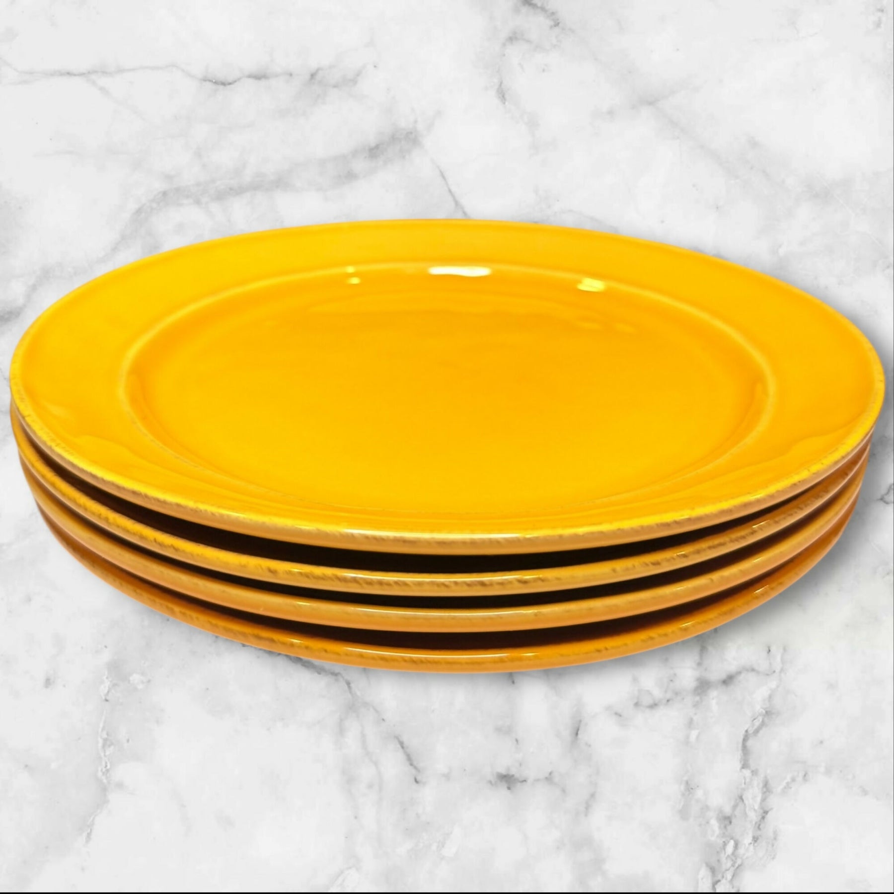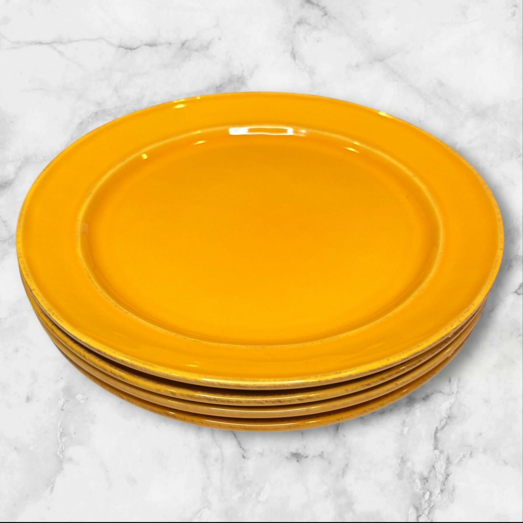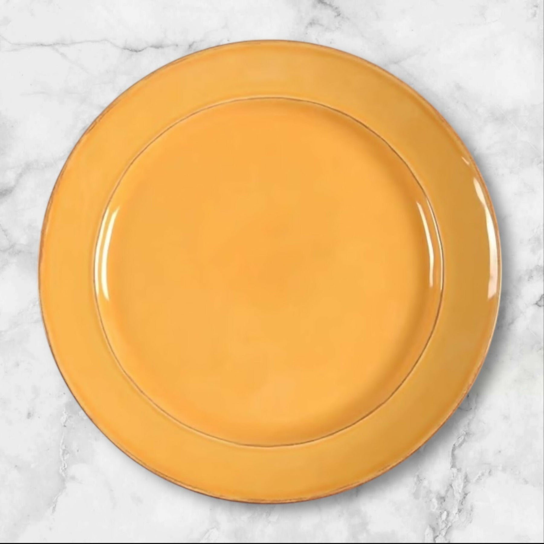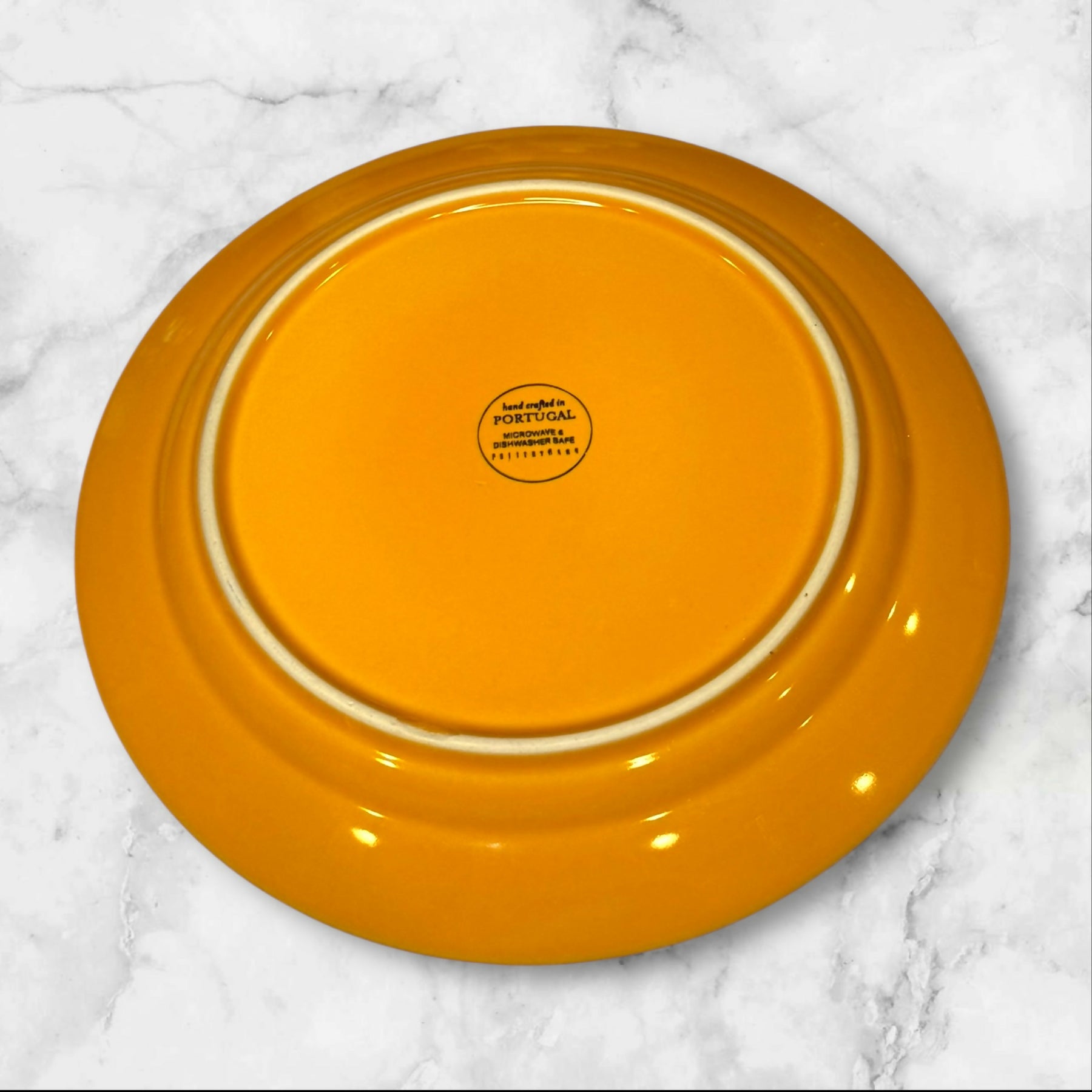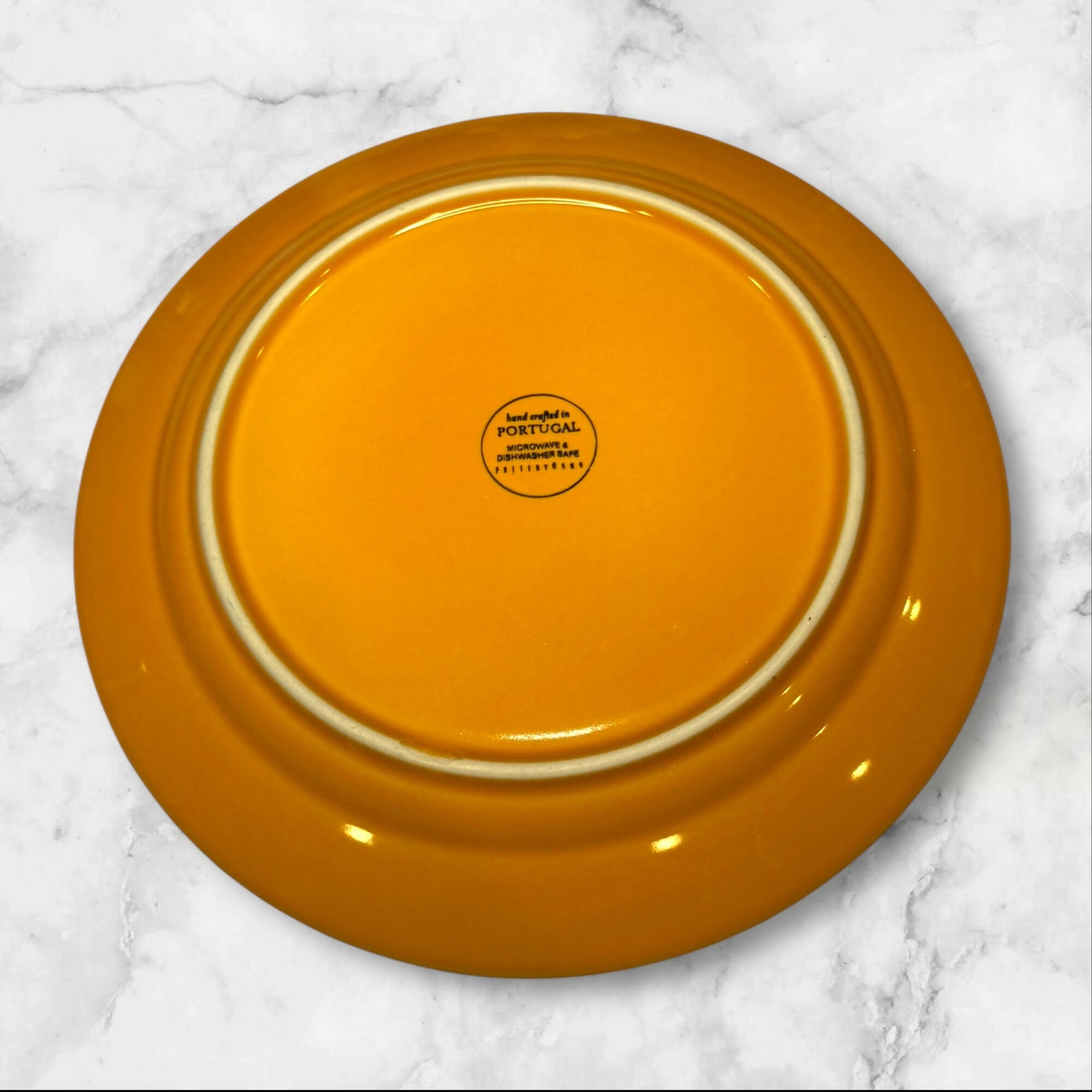 Replace or expand your dinnerware set with this single Pottery Barn Cambria Saffron dinner plate. Crafted in Portugal from durable stoneware, it features a rich golden glaze that adds warmth to any table. Discontinued and hard to find, this plate is perfect for completing your set or keeping as a spare. Microwave and dishwasher safe, it offers both timeless style and everyday practicality.