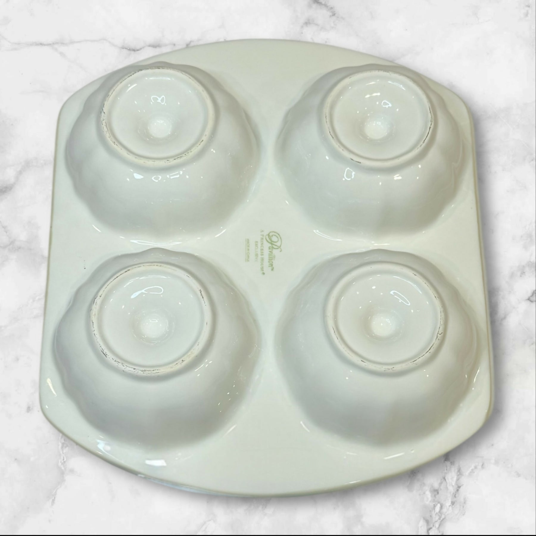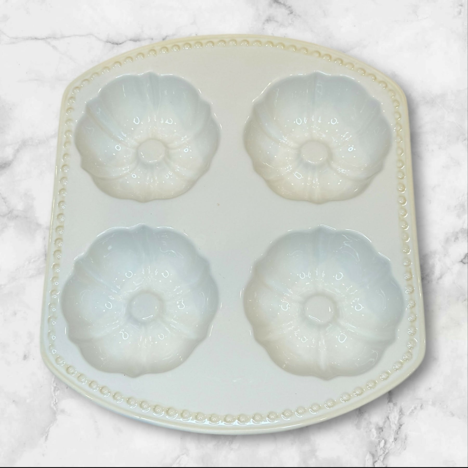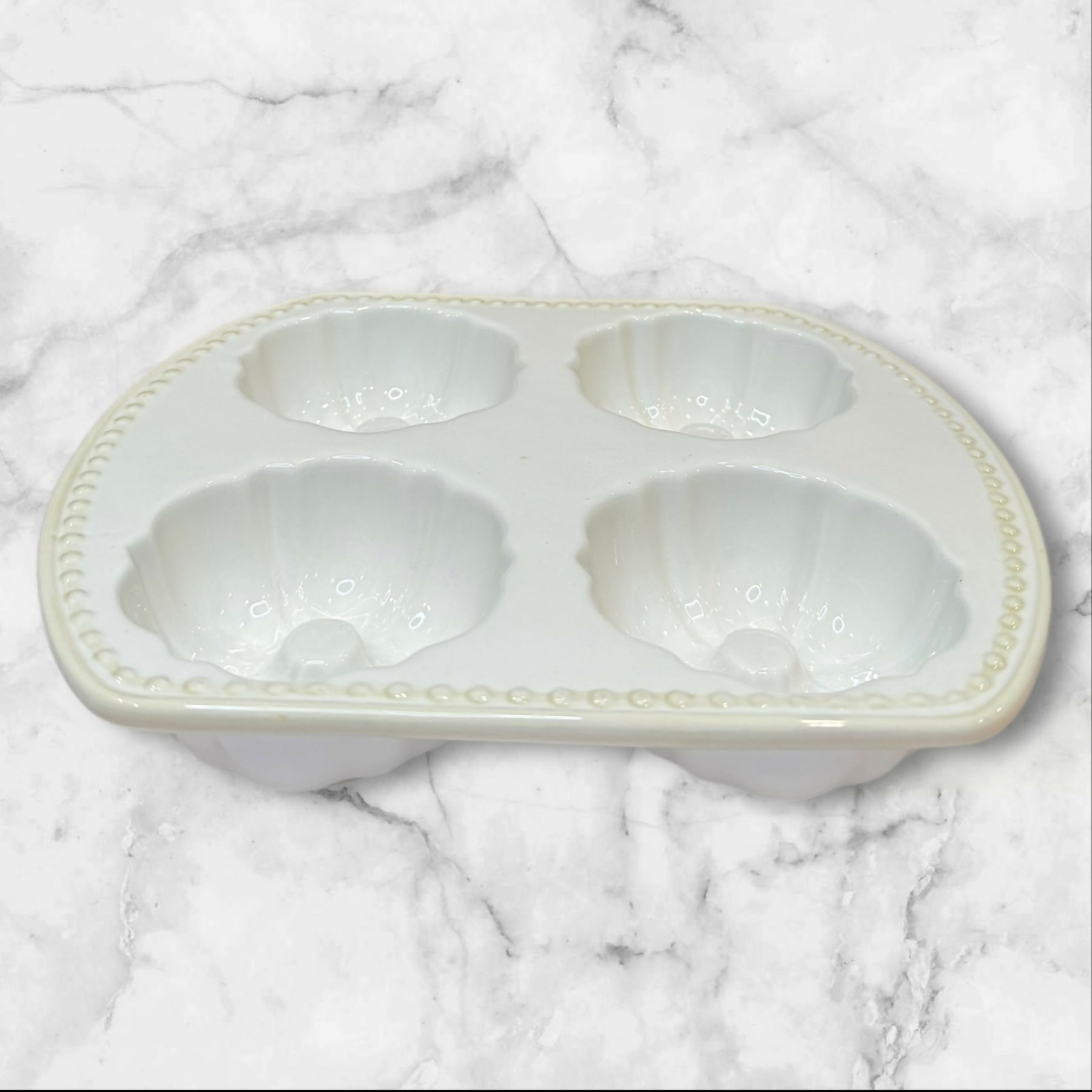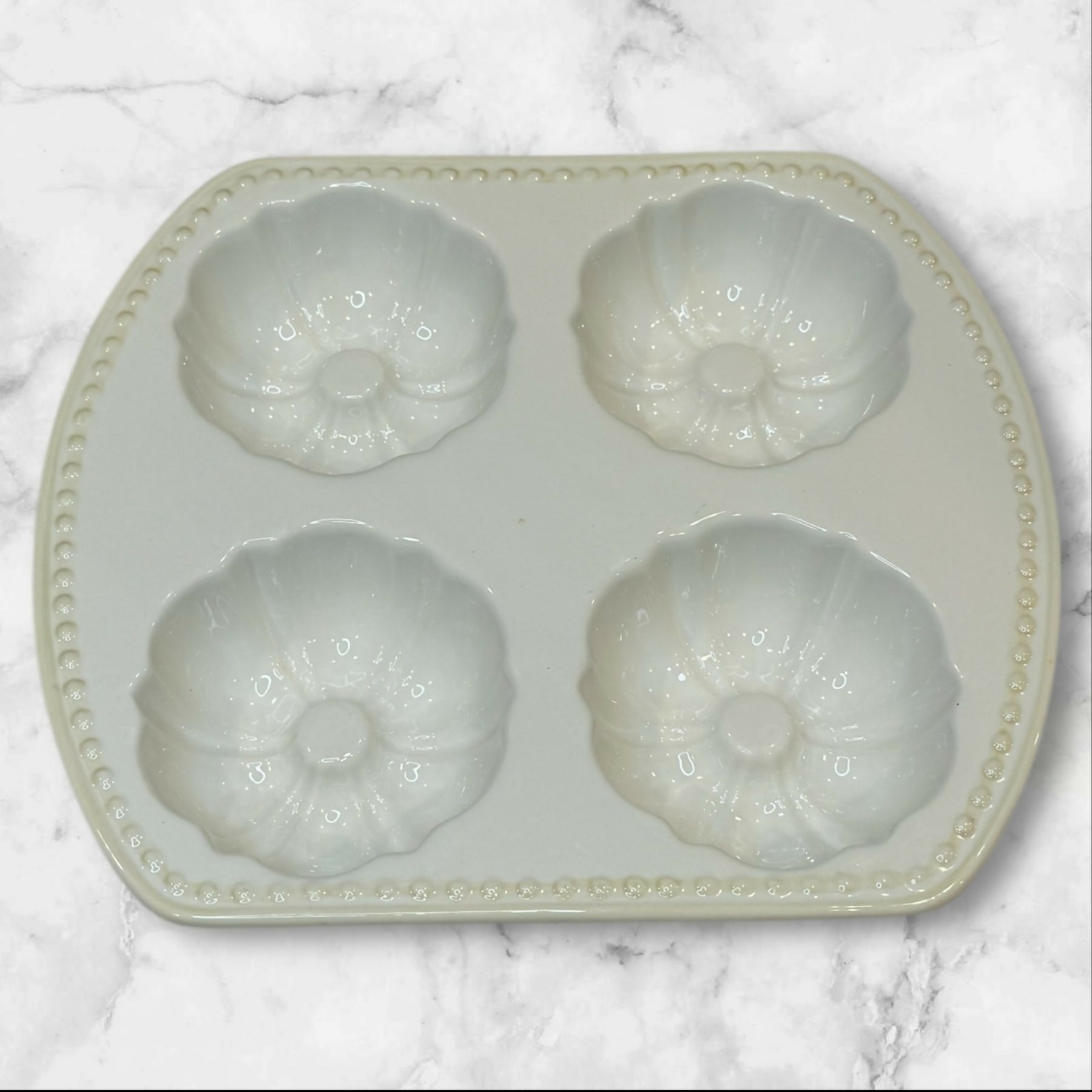 Bake elegant muffins, mini cakes, or individual desserts with this Princess House Fantasia muffin pan. Crafted from durable glazed ceramic, this four-cup pan features a sculpted fluted design and classic ivory finish that transitions beautifully from oven to table. Designed for even baking and easy release, it’s ideal for entertaining, gifting, or everyday use. A timeless Princess House piece that blends functionality with refined presentation.