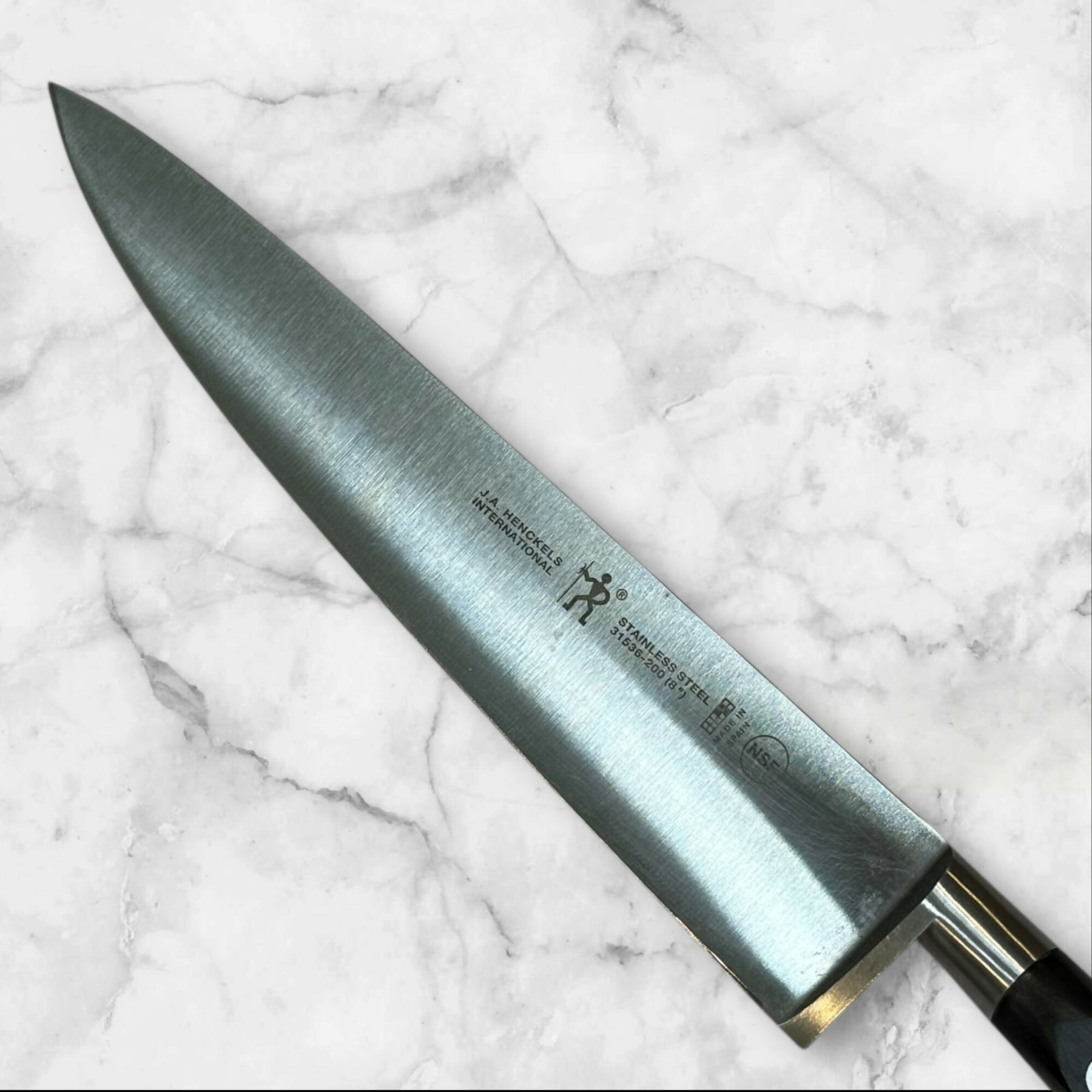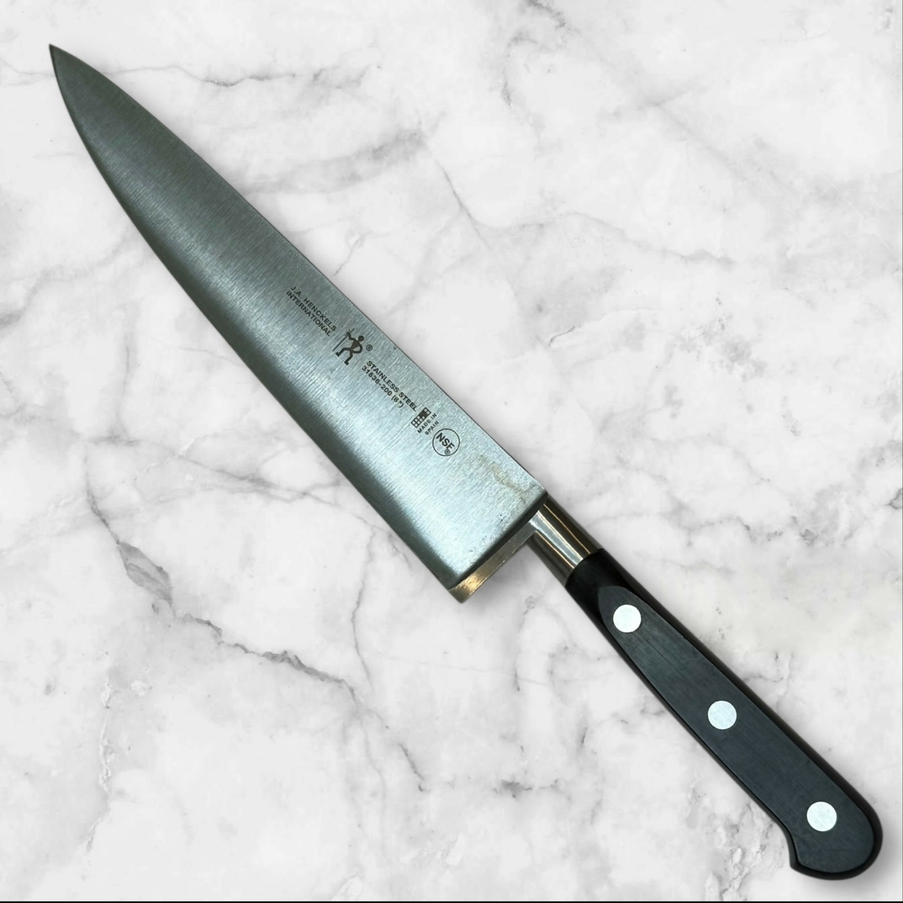 This Henckels International chef knife is crafted in Spain from durable stainless steel and built for reliable everyday performance. Model 31536-200, this NSF-certified knife is designed to meet professional kitchen standards, offering excellent balance and control for slicing, chopping, and dicing. The classic triple-riveted handle provides a secure, comfortable grip, making this knife a dependable choice for both home cooks and culinary professionals.