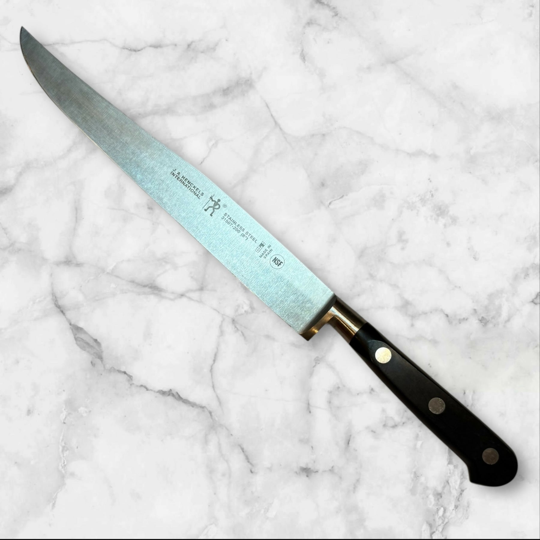 Upgrade your kitchen with this professional-quality J.A. Henckels International Classic knife set. Made in Spain from high-carbon stainless steel, these knives are NSF certified and designed for durability. With full tang construction and ergonomic triple-riveted handles, the set covers every essential prep task: chopping, slicing, carving, and paring. Gently used and in excellent condition, this set is perfect for both everyday cooking and gourmet preparation.