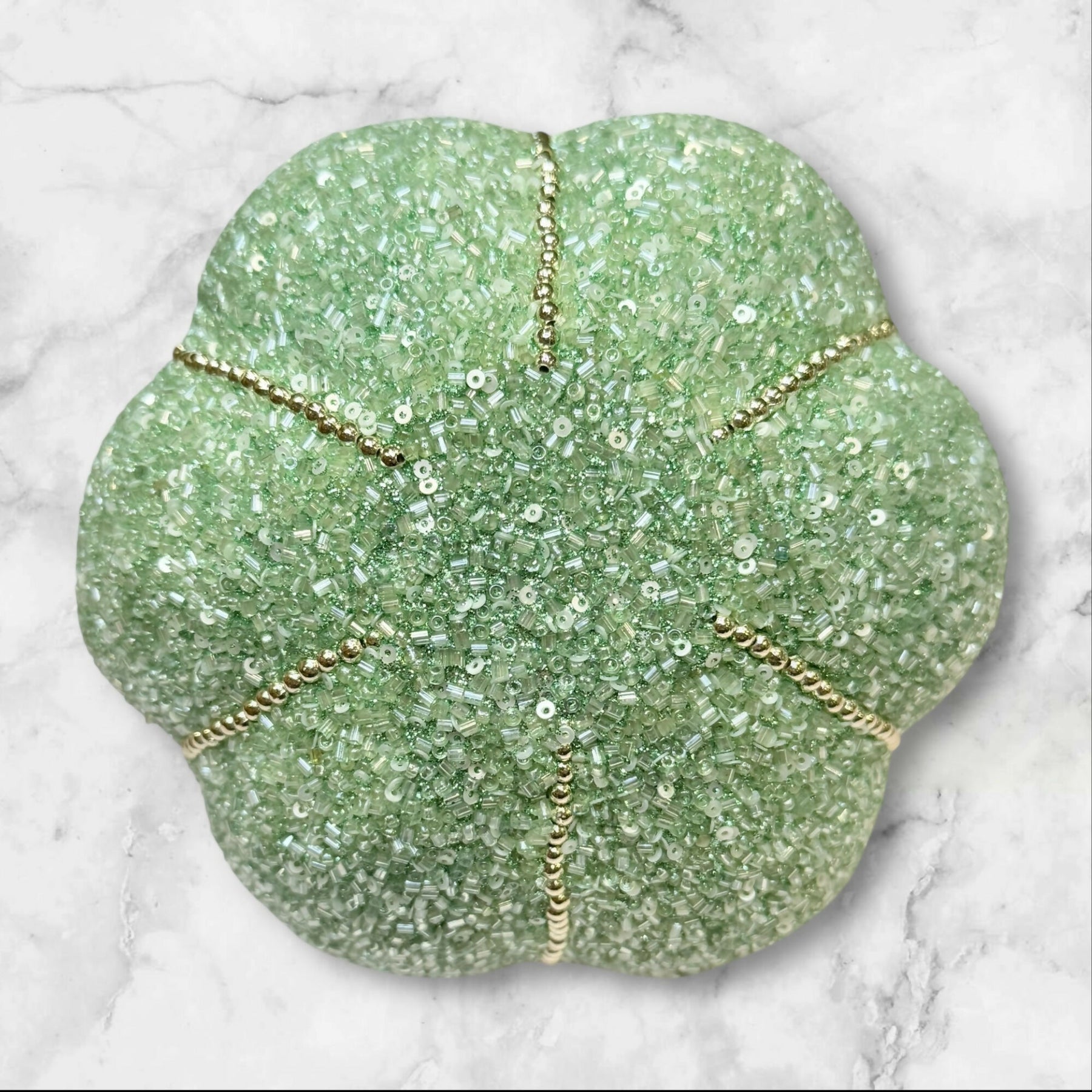 Material: Velvet fabric with bead accents and crackle glass