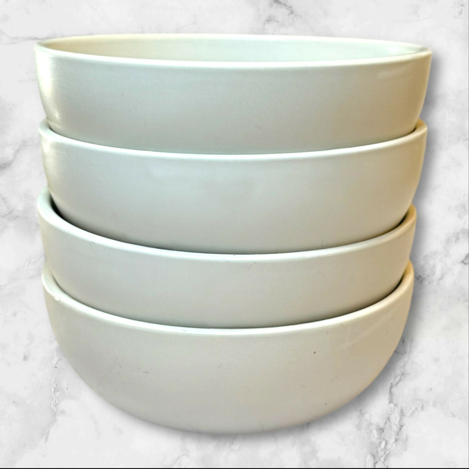 Simple, durable, and versatile—this set of four Crate & Barrel off-white bowls is perfect for everyday dining. Each bowl features a soft cream glaze with a modern matte finish and clean lines that complement any tableware. Ideal for cereal, soup, or salad. Made in China, these bowls show light utensil marks but remain in overall good condition with no chips or cracks.