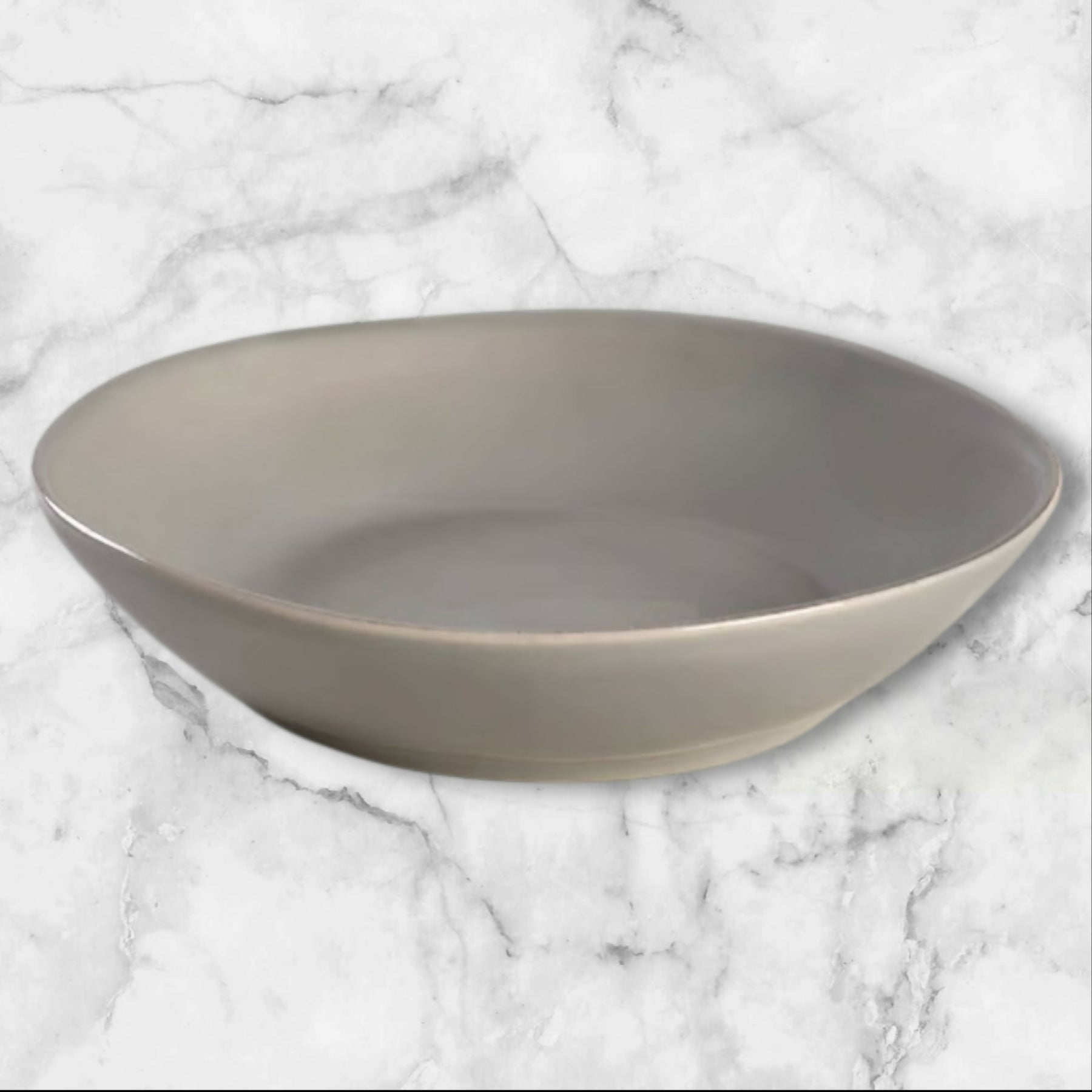 Serve pasta, grain bowls, or hearty salads in modern style with this set of Marin Grey pasta bowls from Crate & Barrel. Crafted from durable stoneware, these bowls feature a soft grey glaze with subtle tonal variation for an elevated yet relaxed table setting. Designed for everyday use and entertaining alike, the wide, shallow profile is both functional and visually striking. A high-quality, gently used set offered through eco-friendly resale.