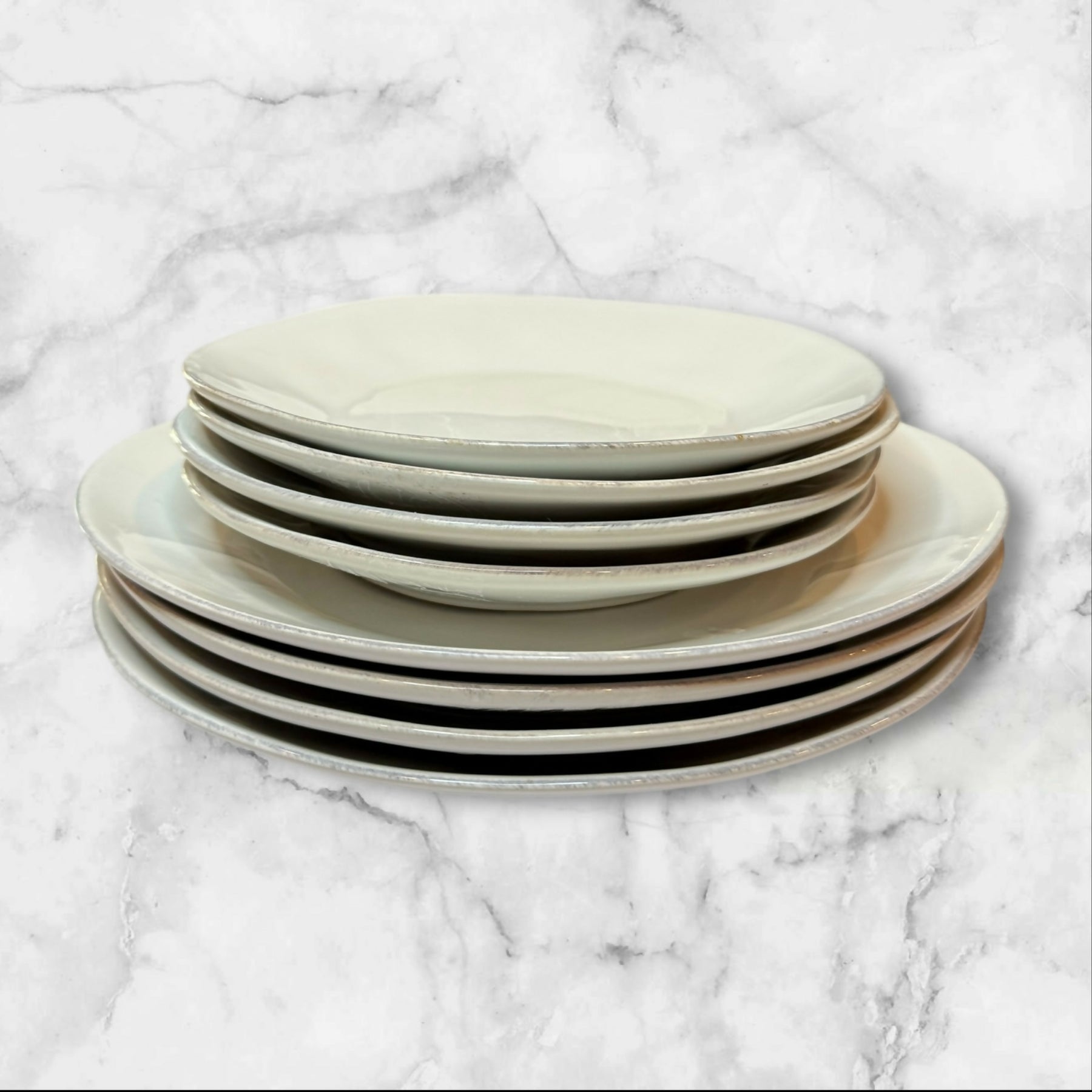 Timeless and versatile, the Crate & Barrel Marin White collection is handcrafted in Portugal with soft curves, organic edges, and a warm white glaze. This 8-piece set includes four dinner plates and four salad plates, ideal for everyday dining or elegant gatherings. Dinner plates show light utensil wear; salad plates are in excellent condition with no chips or cracks. A classic addition to any modern table.