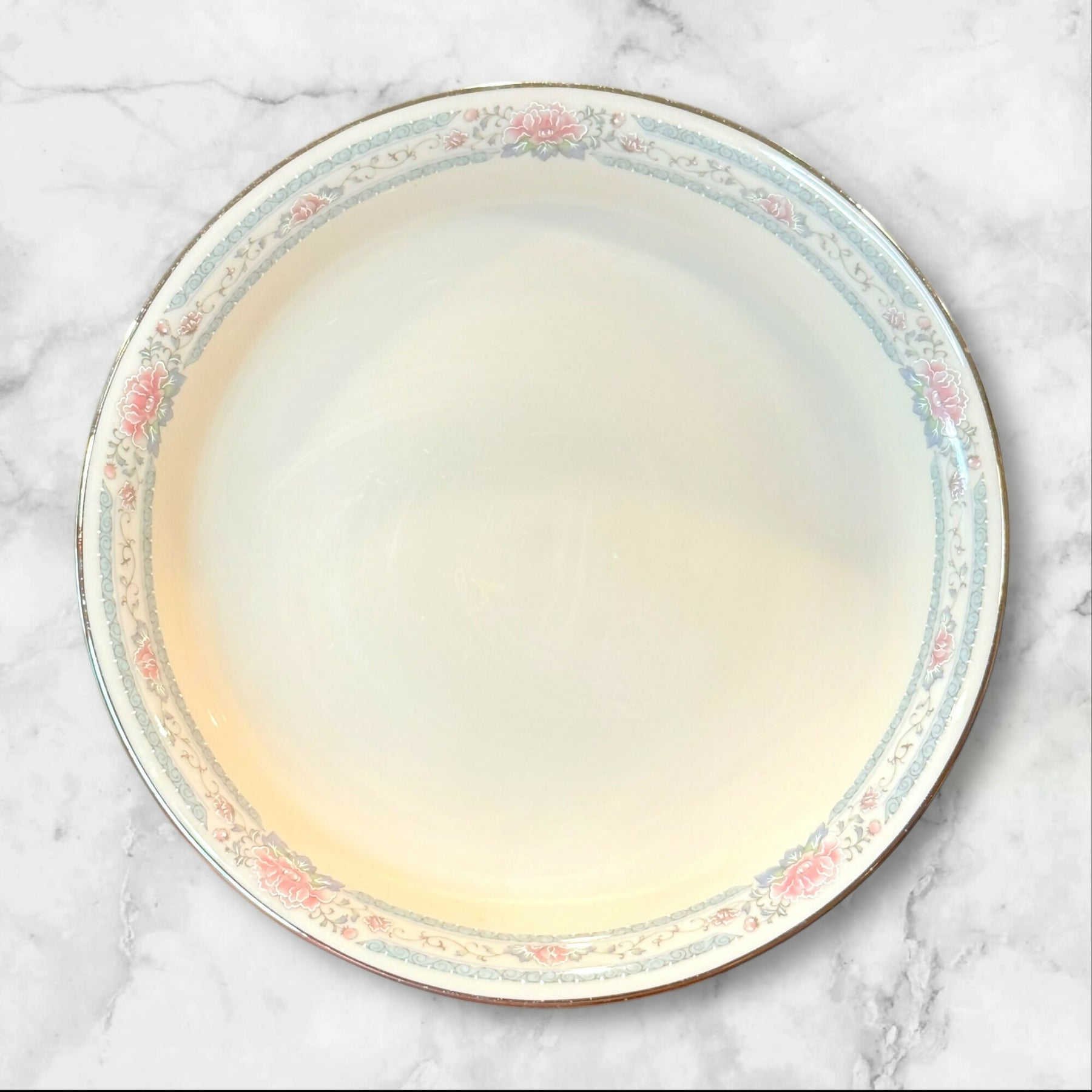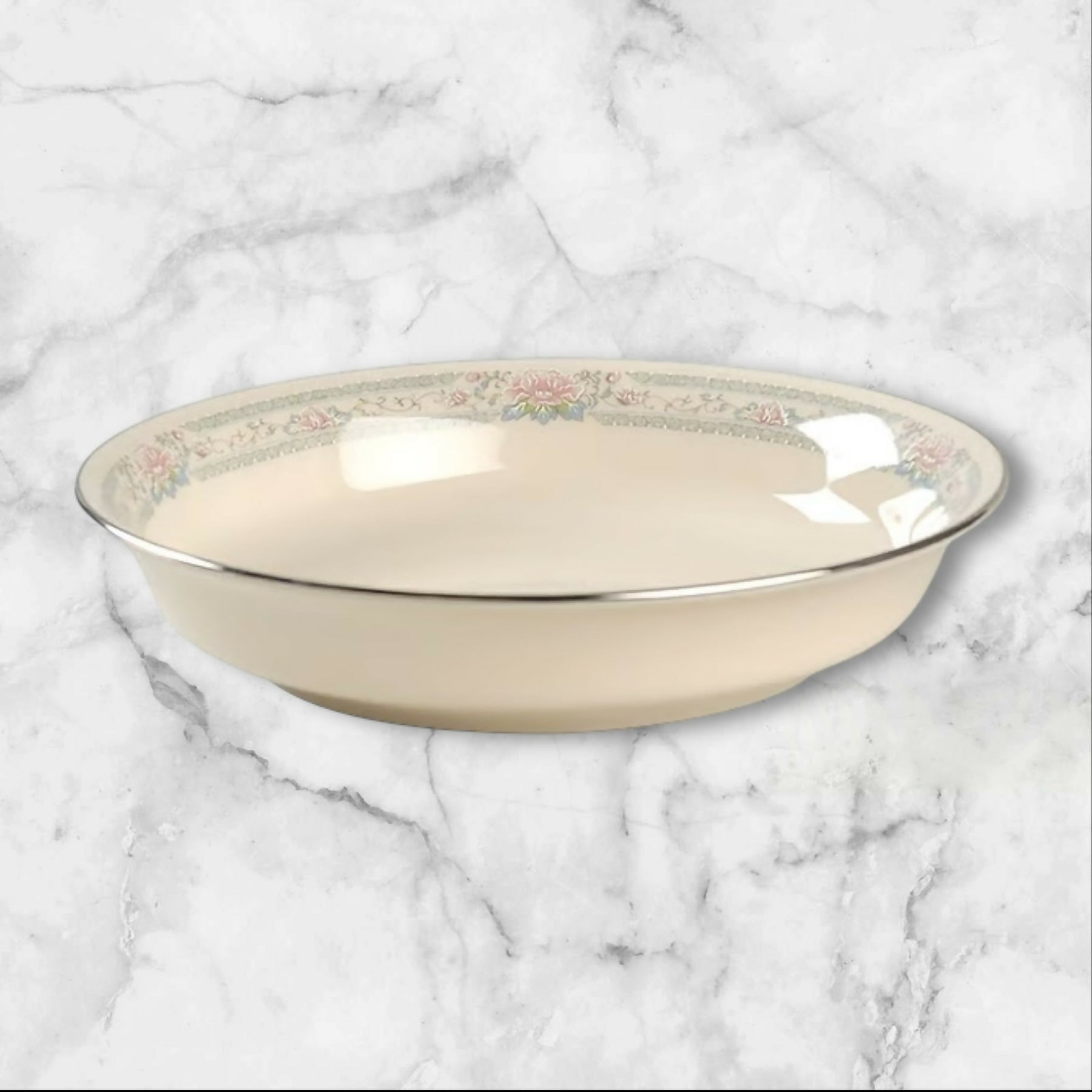 These Lenox Charleston coupe soup bowls feature a classic ivory base accented with soft florals and platinum trim, offering timeless elegance for both everyday meals and special occasions. Crafted in the USA and now discontinued, this highly collectible pattern is known for its refined detailing. Both bowls are in excellent condition with minimal signs of use, making them perfect as replacements or additions to a Charleston collection.