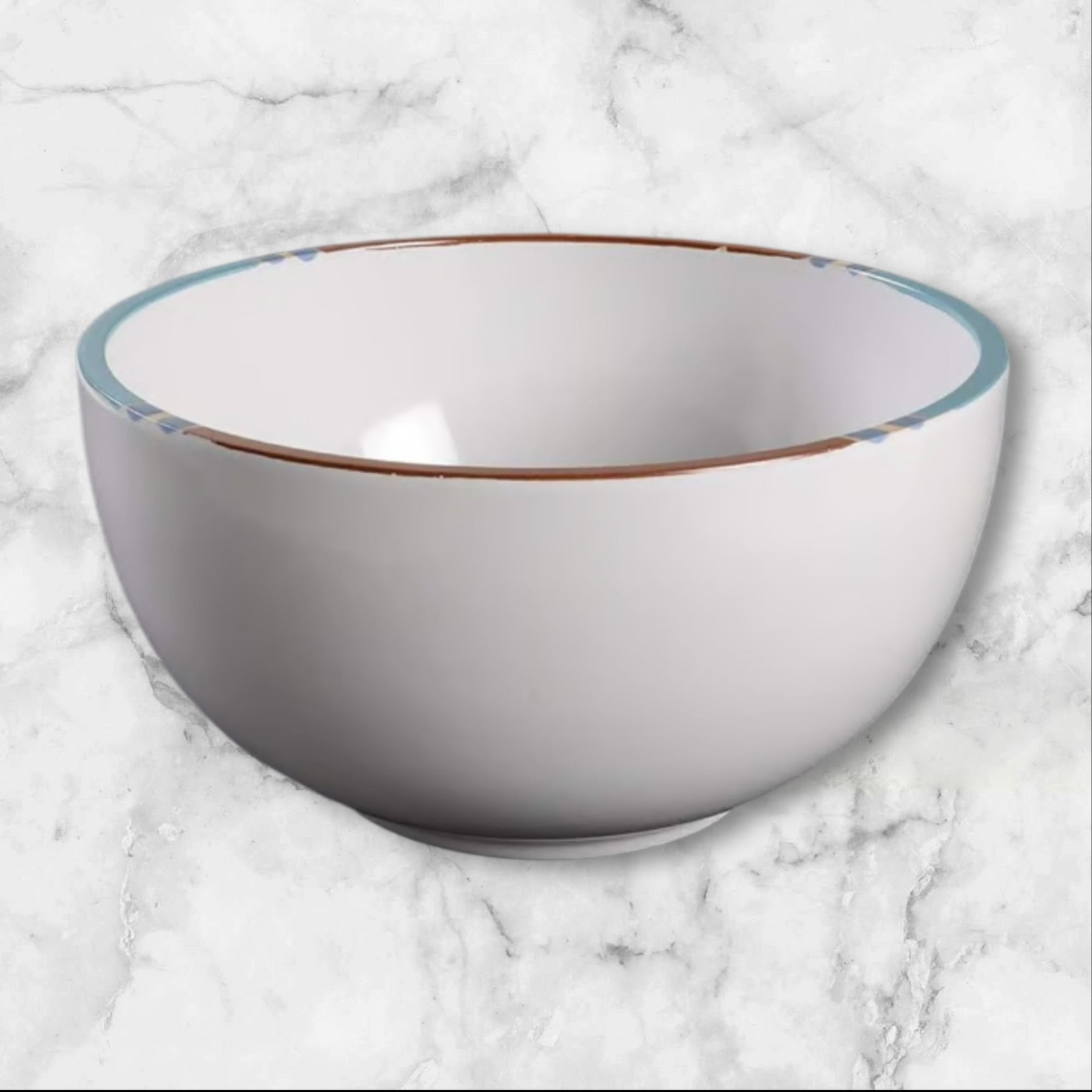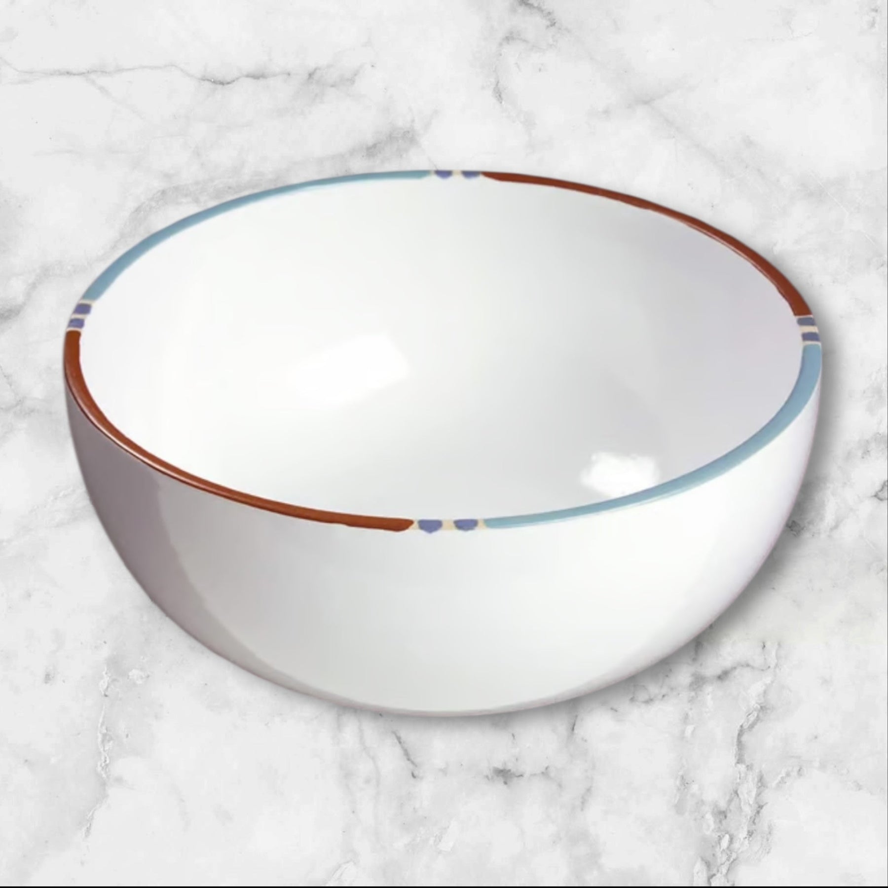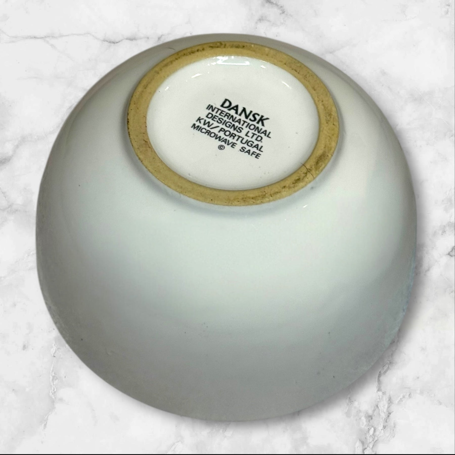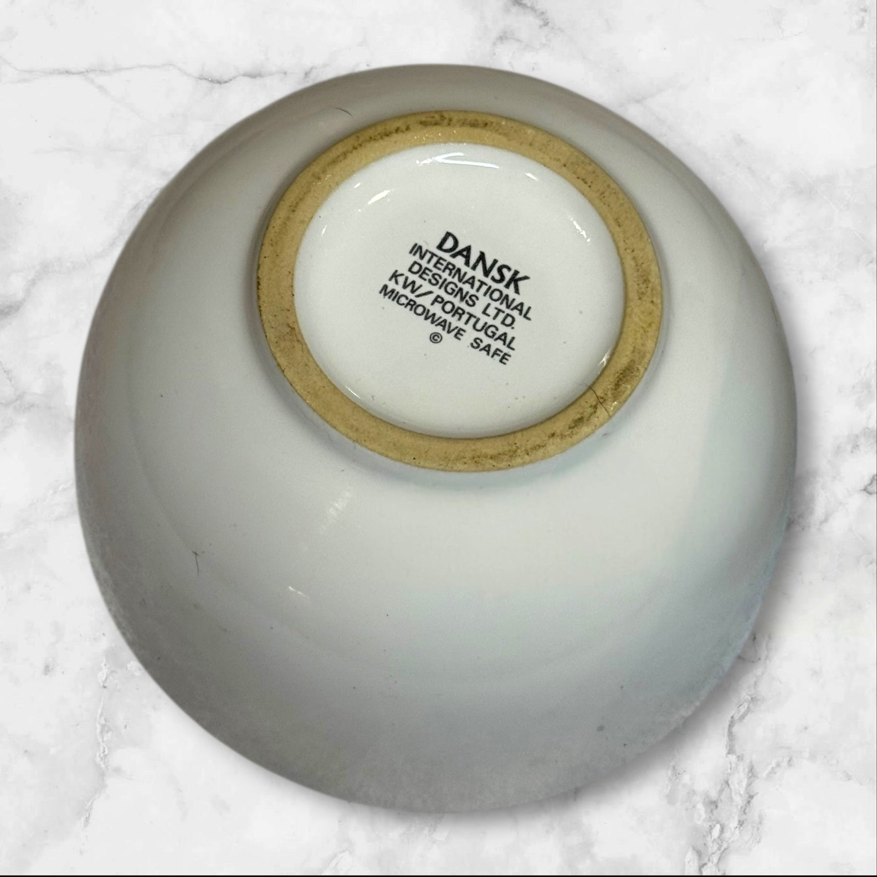 This Dansk Mesa White Sand 3-piece mixing bowl set, made in Portugal, features the signature hand-painted rim in teal, blue, and terra cotta. These durable ceramic bowls nest perfectly for easy storage and work beautifully for baking, prep, serving, or display. A discontinued and highly collectible Dansk pattern. All three bowls are in great condition with minor utensil marks from gentle use.