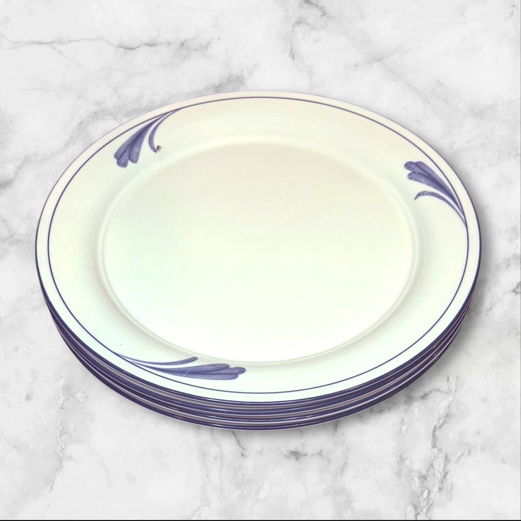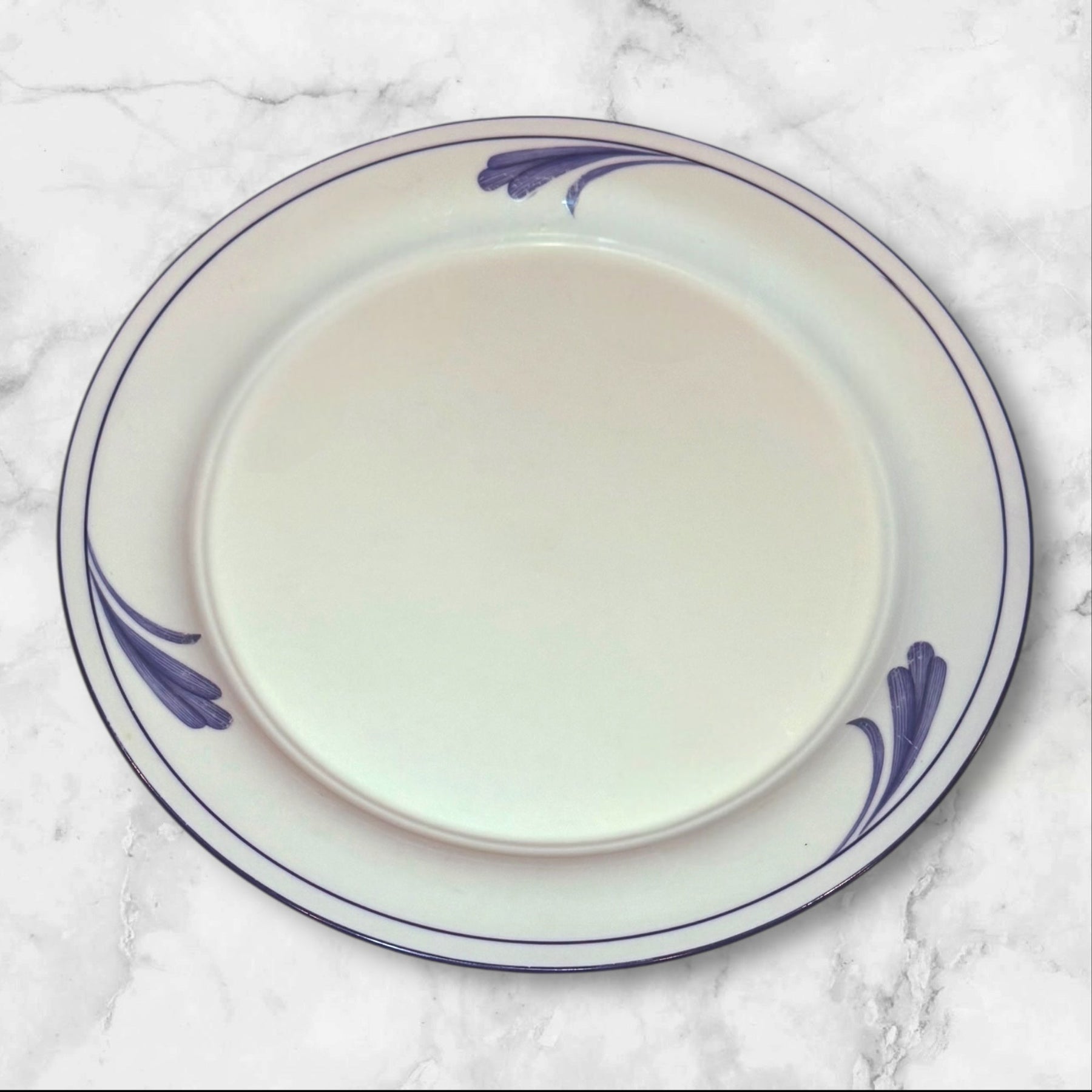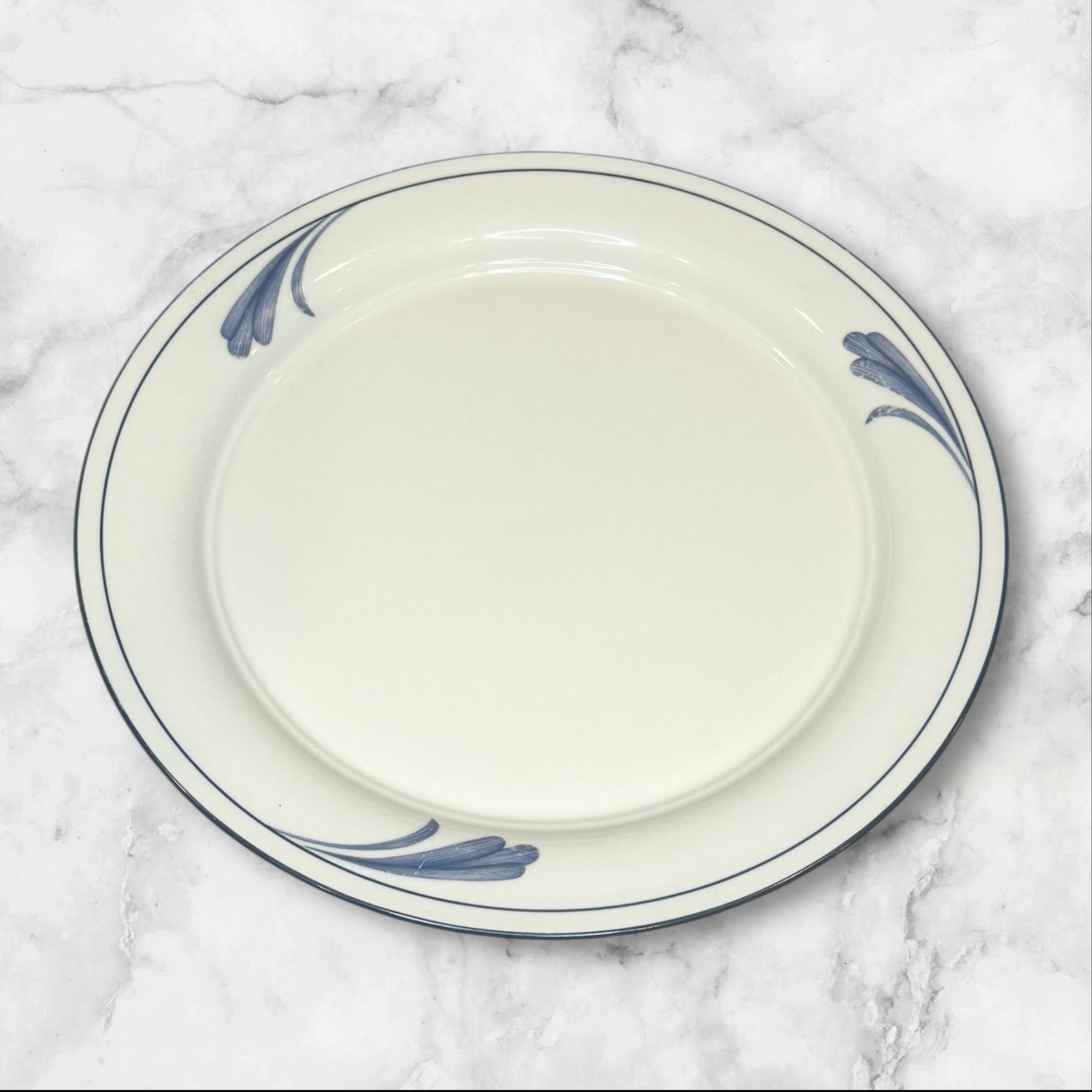 Add timeless elegance to your table with this discontinued Lenox Blue Brushstrokes salad plate set. Featuring soft, hand-painted blue accents on classic ivory porcelain, these 8.5” plates are microwave and oven safe. Perfect for both casual dining and formal entertaining, this collectible set blends durability with refined craftsmanship.