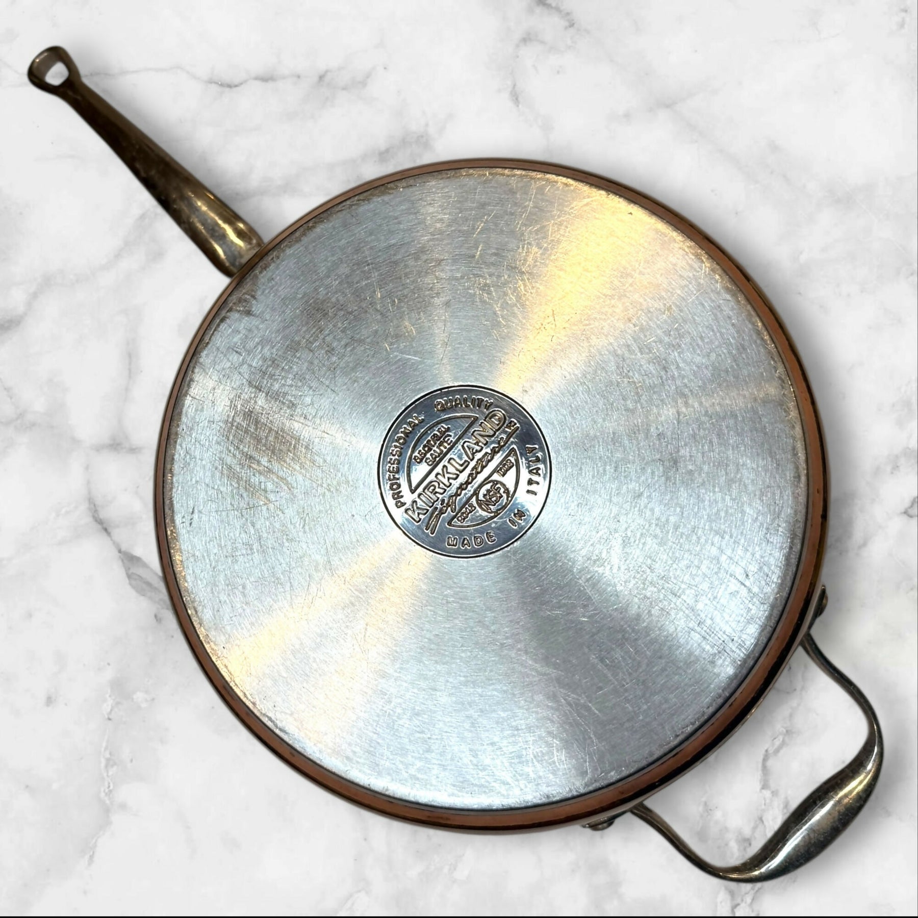 Cook with professional performance using this 3.5-quart sauté pan from Kirkland Signature. Crafted in Italy from durable stainless steel, this pan features a wide cooking surface and straight sides ideal for sautéing, braising, and simmering. Sturdy riveted handles provide secure handling, while the heavy base offers reliable heat distribution. A versatile, high-quality pan built for everyday cooking and long-term use.