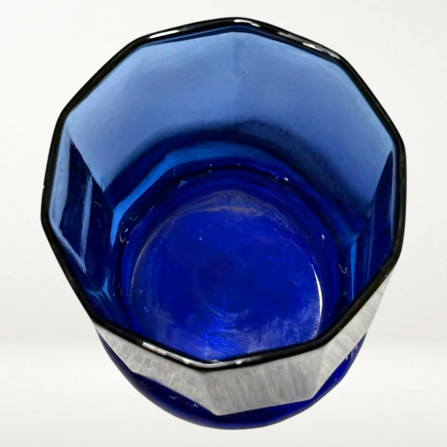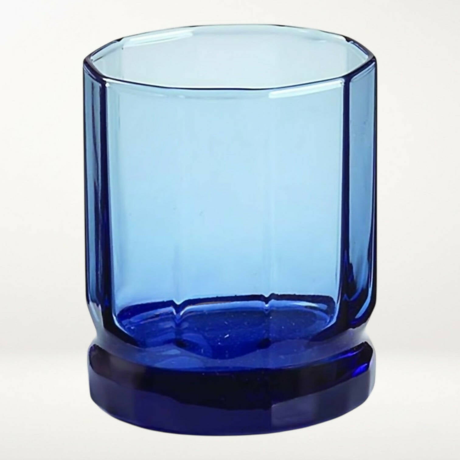 Add a pop of bold color to your barware with this Essex Cobalt Blue double old fashioned glass by Anchor Hocking. This discontinued 9 oz piece features clean, modern lines and a rich cobalt hue that stands out beautifully on any table or bar cart. Perfect for cocktails, spirits, or everyday use. In great condition with minor wear, it remains a striking, functional, and collectible glass for any home.