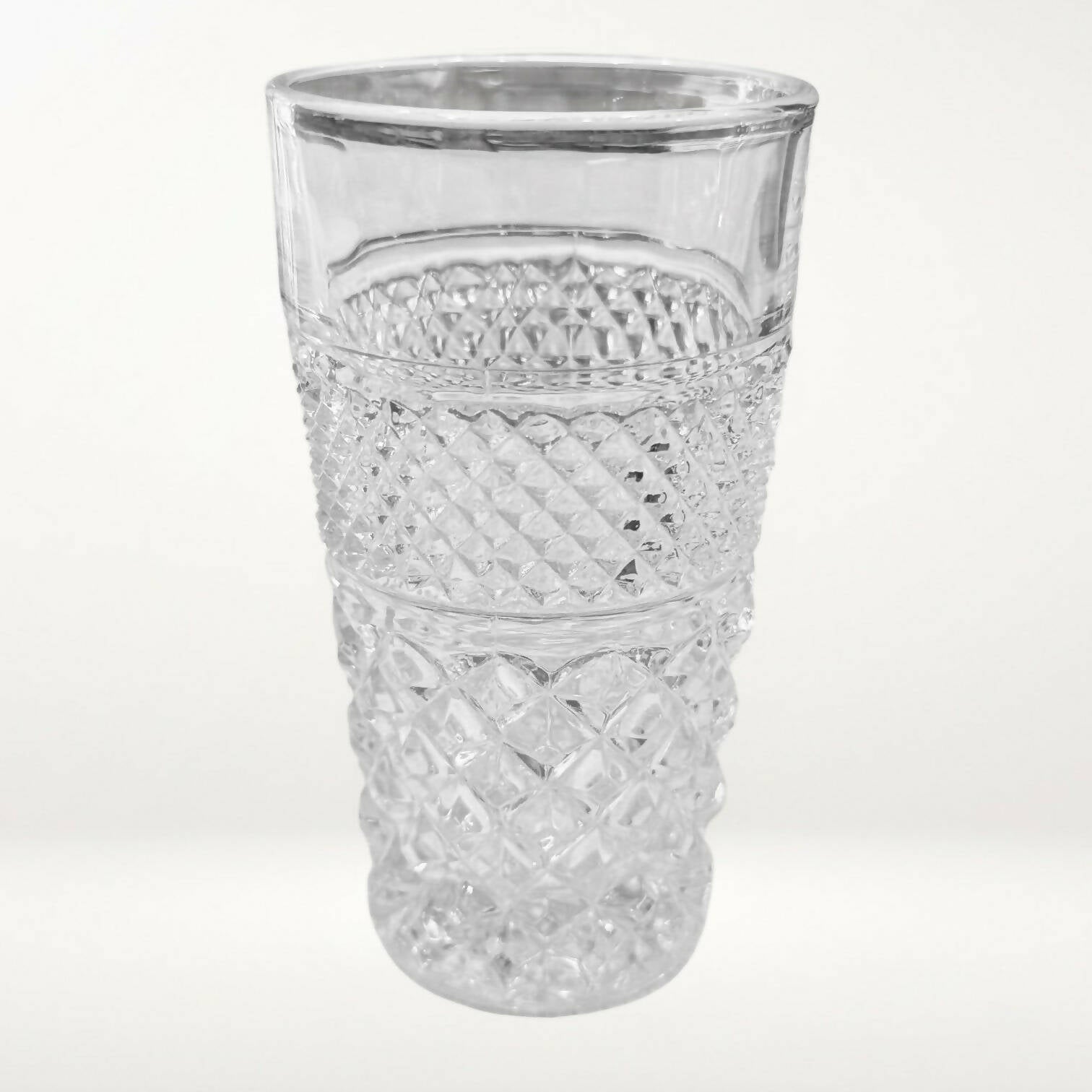 This set of 4 Anchor Hocking Wexford 10 oz flat tumblers features the classic diamond-cut and paneled pattern that gives the Wexford collection its iconic sparkle. Crafted in the USA and now discontinued, these pressed-glass tumblers are durable, collectible, and perfect for everyday beverages or vintage table settings. A timeless choice for Wexford collectors or anyone seeking eco-friendly, high-quality glassware through Kitchen Switchen Resale.