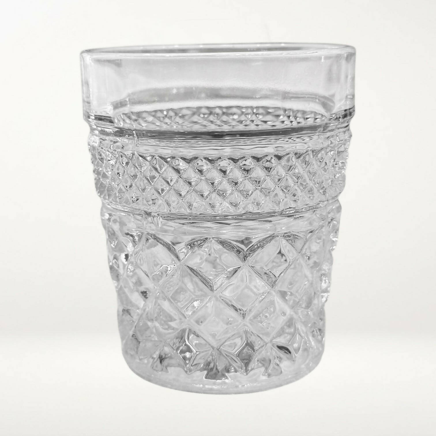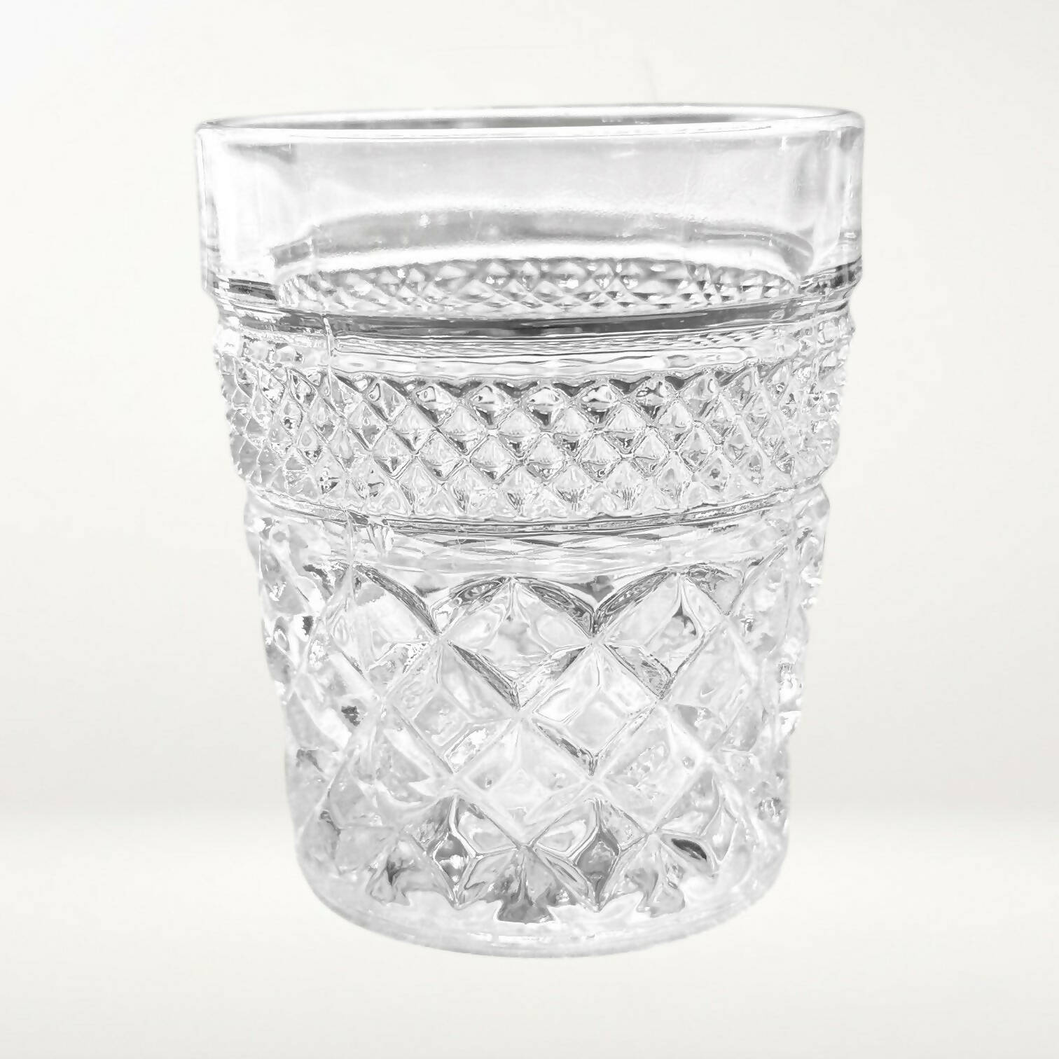This set of 3 Anchor Hocking Wexford Old Fashioned glasses showcases the iconic diamond-cut and paneled design that gives the collection its timeless sparkle. Crafted in the USA and now discontinued, Wexford glassware is prized for durability, clarity, and vintage charm. These pieces are perfect for cocktails, everyday beverages, or replacement needs, offering classic style at an eco-friendly resale price through Kitchen Switchen.