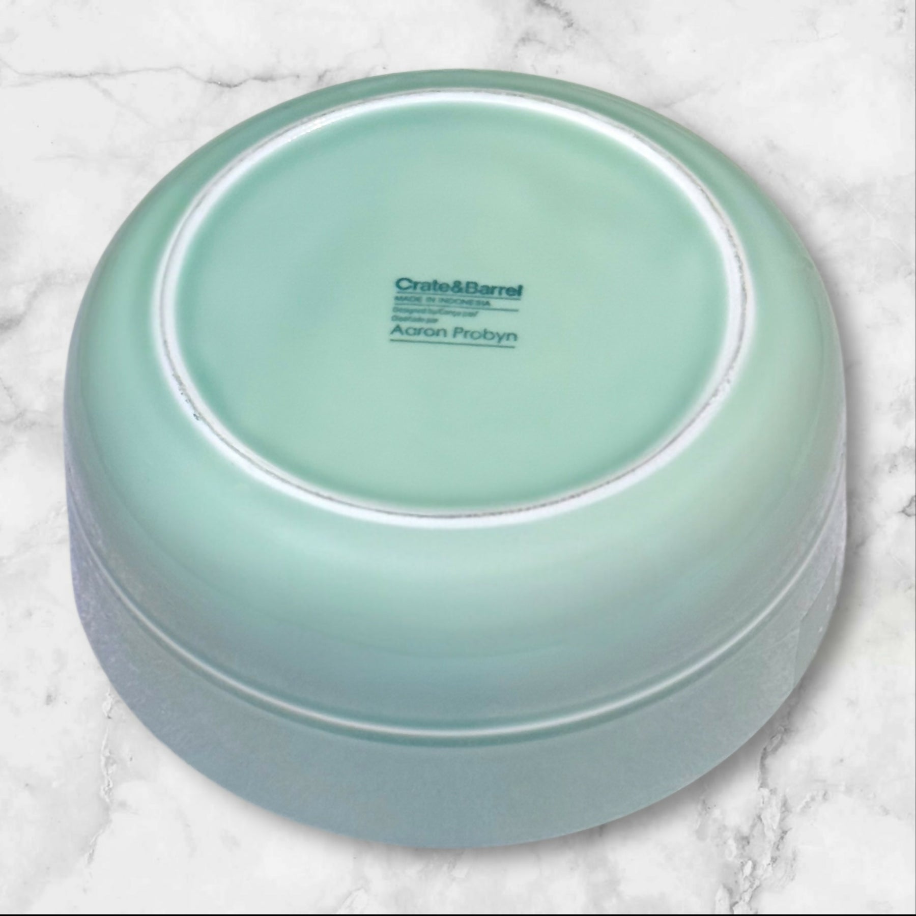 This mixed set of 5 Crate & Barrel Hue bowls, designed by Aaron Probyn, features soft green and blue tones with a modern, hand-glazed finish. Each bowl measures 5 7/8” x 2.5” and is perfect for cereal, soups, snacks, and everyday dining. The green bowls are in great condition, while the blue bowls have small rim chips that don’t affect use. A discontinued, high-demand collection ideal for modern, minimalist kitchens.