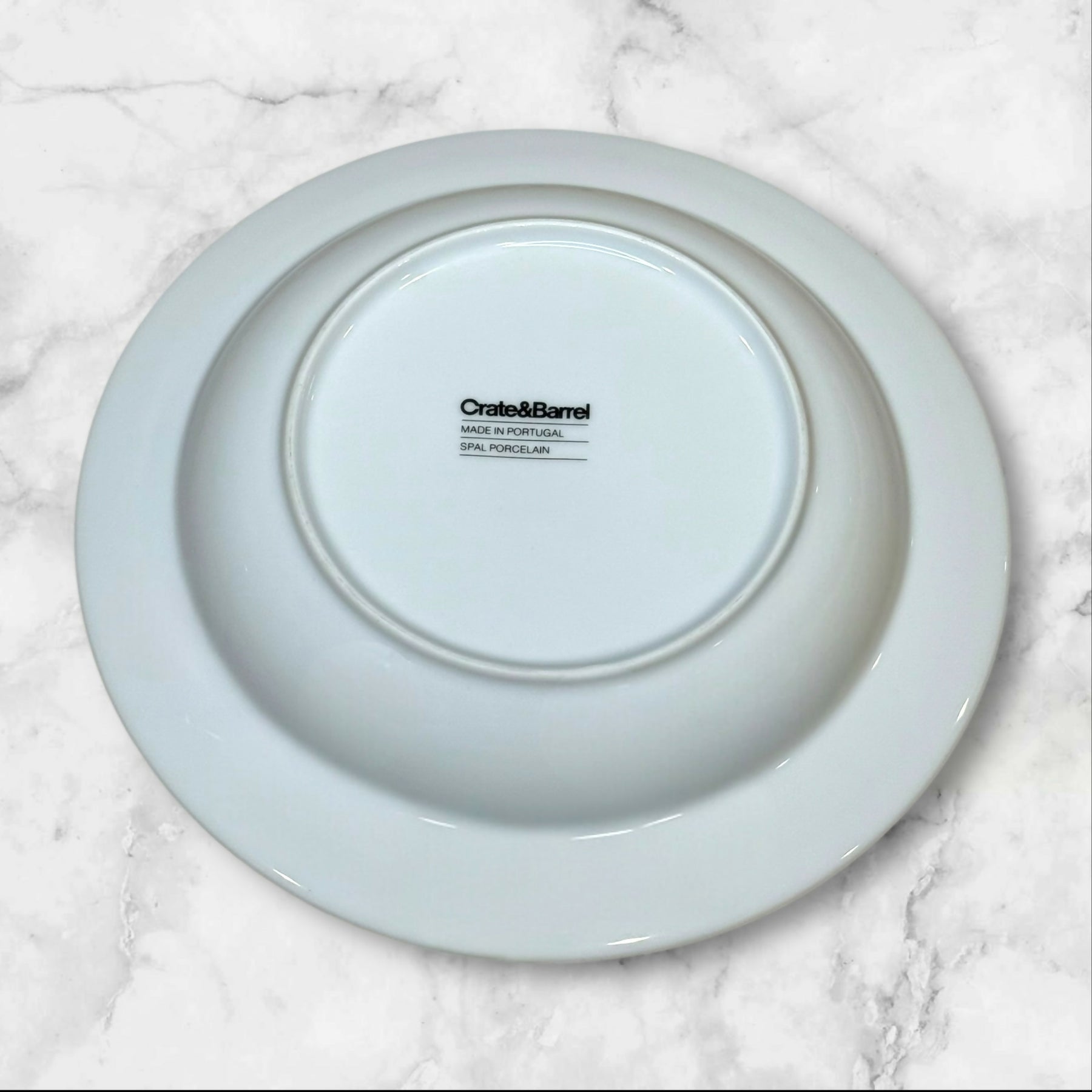 This set of 4 Crate & Barrel Roulette White Low Bowls brings clean, modern style to everyday dining. Crafted from durable porcelain with subtle concentric rings, these versatile low bowls are ideal for pasta, salads, soups, and entrees. Designed by Martin Hunt and made in Portugal, they are microwave-, dishwasher-, and warm oven-safe. All bowls are in excellent condition with very light, normal wear.