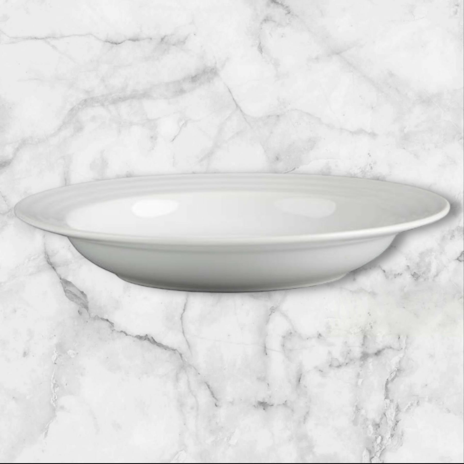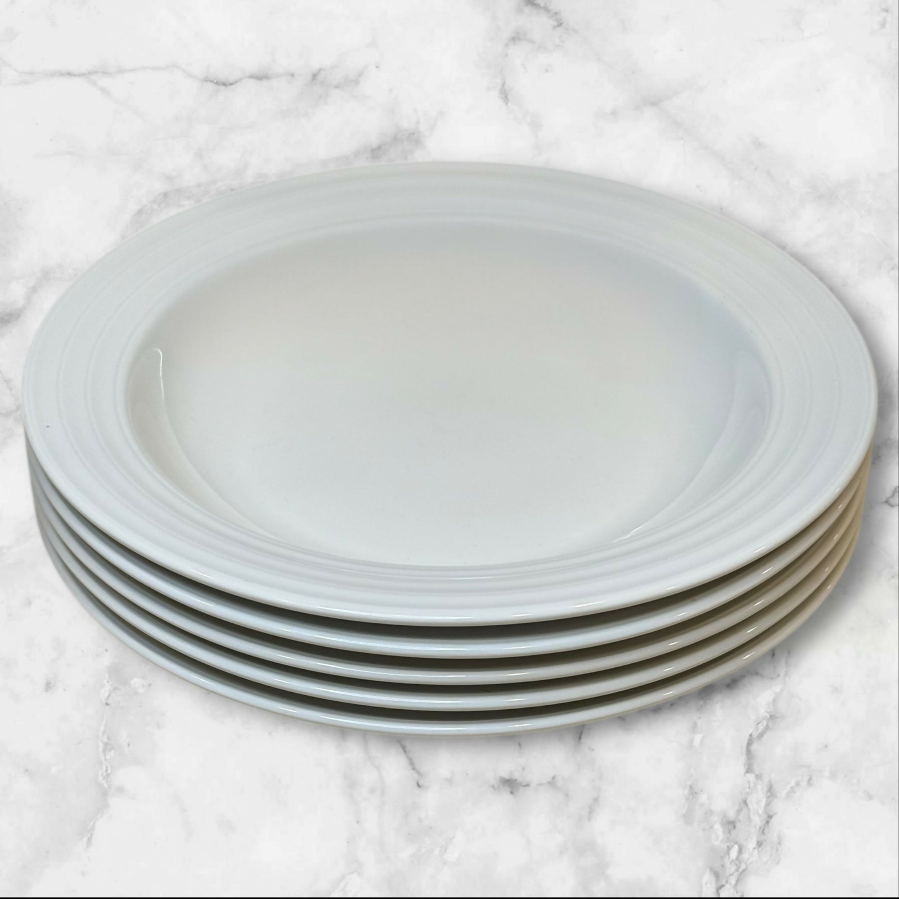 This set of 5 Crate & Barrel Roulette White Low Bowls offers timeless simplicity and everyday durability. Crafted from pure white porcelain with subtle concentric rings, these versatile bowls are perfect for pasta, salads, soups, or grain bowls. Designed by Martin Hunt of Queensberry Hunt and made in Portugal, they’re microwave-, dishwasher-, and warm oven-safe. All bowls are in excellent condition with only minor wear.