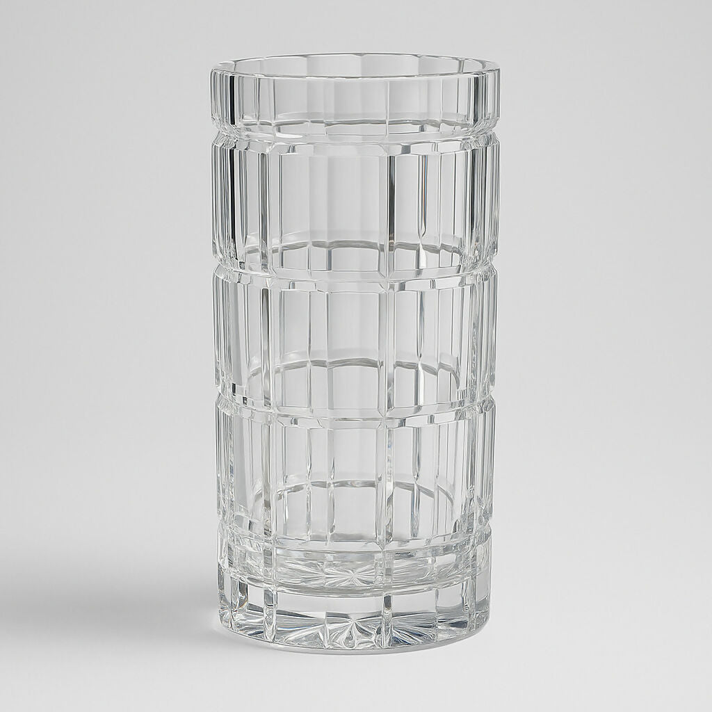Elevate your home décor with this exquisite Dresden crystal vase. Measuring 10 inches tall with a 4.75-inch diameter, it features intricate cut detailing and sparkling clarity. Perfect as a centerpiece or display piece, this vase showcases timeless craftsmanship and luxury appeal.