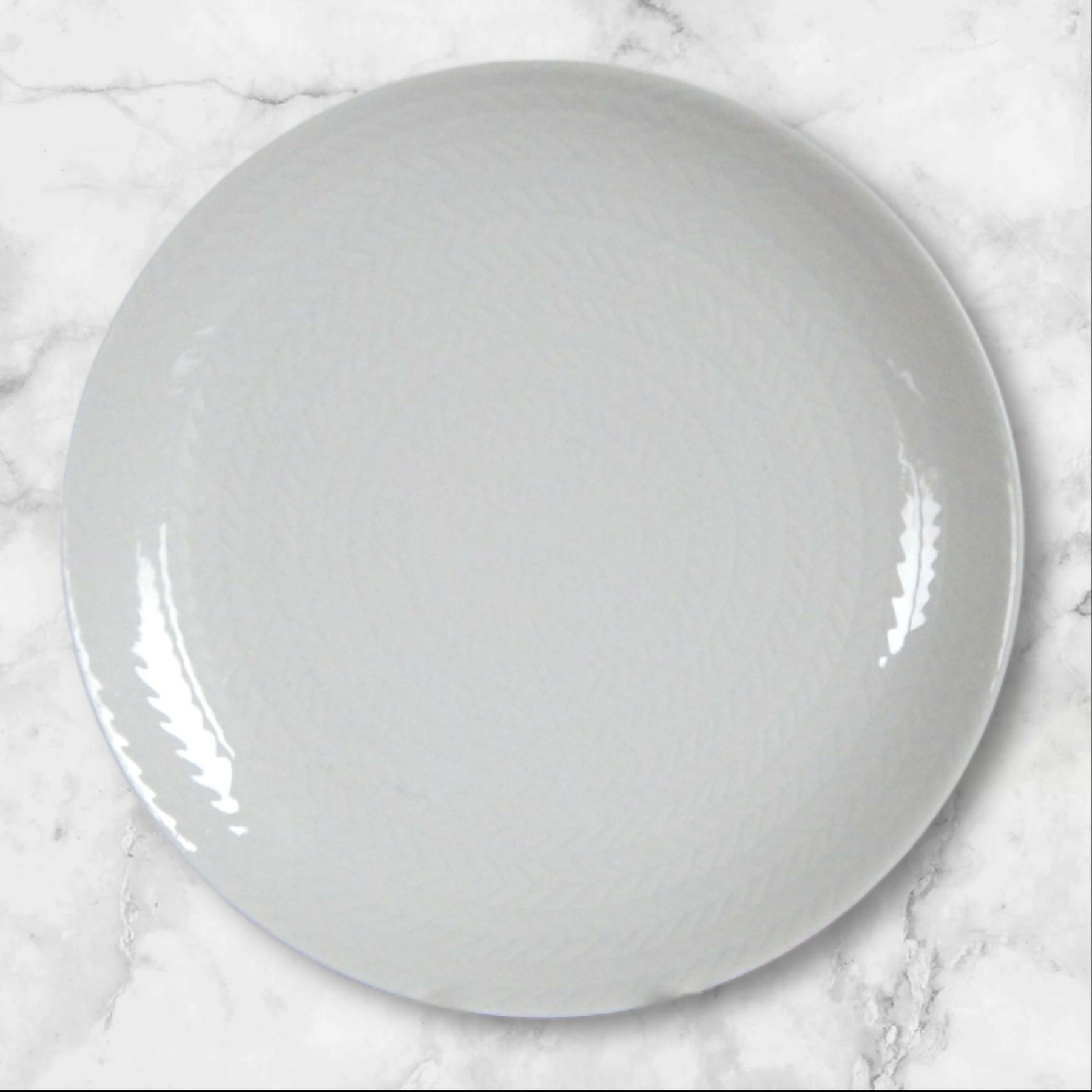 Bring understated Scandinavian elegance to your table with this set of seven salad plates by Rörstrand of Sweden. Crafted from fine porcelain, these plates feature a soft white glaze with a subtle textured pattern that adds depth without overpowering your table setting. Clean, timeless, and versatile, they pair beautifully with both modern and classic dinnerware. Ideal for salads, desserts, or light meals.